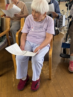写真の方が、「海」を一生懸命に唄われた、ほのぼのクラブの利用者様です。音楽の好きな方で、ギターの