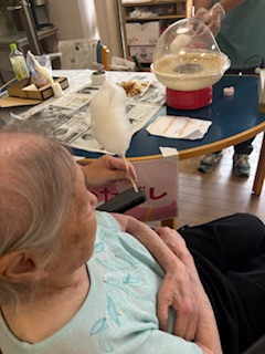 す。奉優会のスタッフも大勢来てくれて、本当に皆様楽しそうでした。さて、写真の利用者様、実は今一つ綿菓子がお気