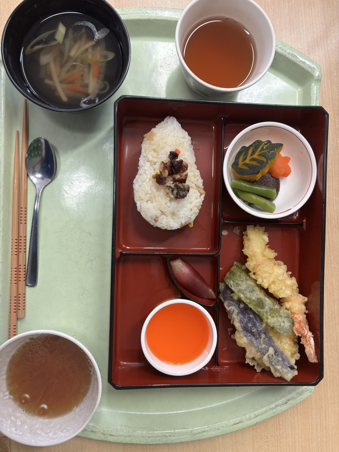 そして、「天ぷらの盛り合わせ」に「メロンゼリー」の数々が綺麗に盛られて弁当箱の中に納まっています。敬老の日を食事