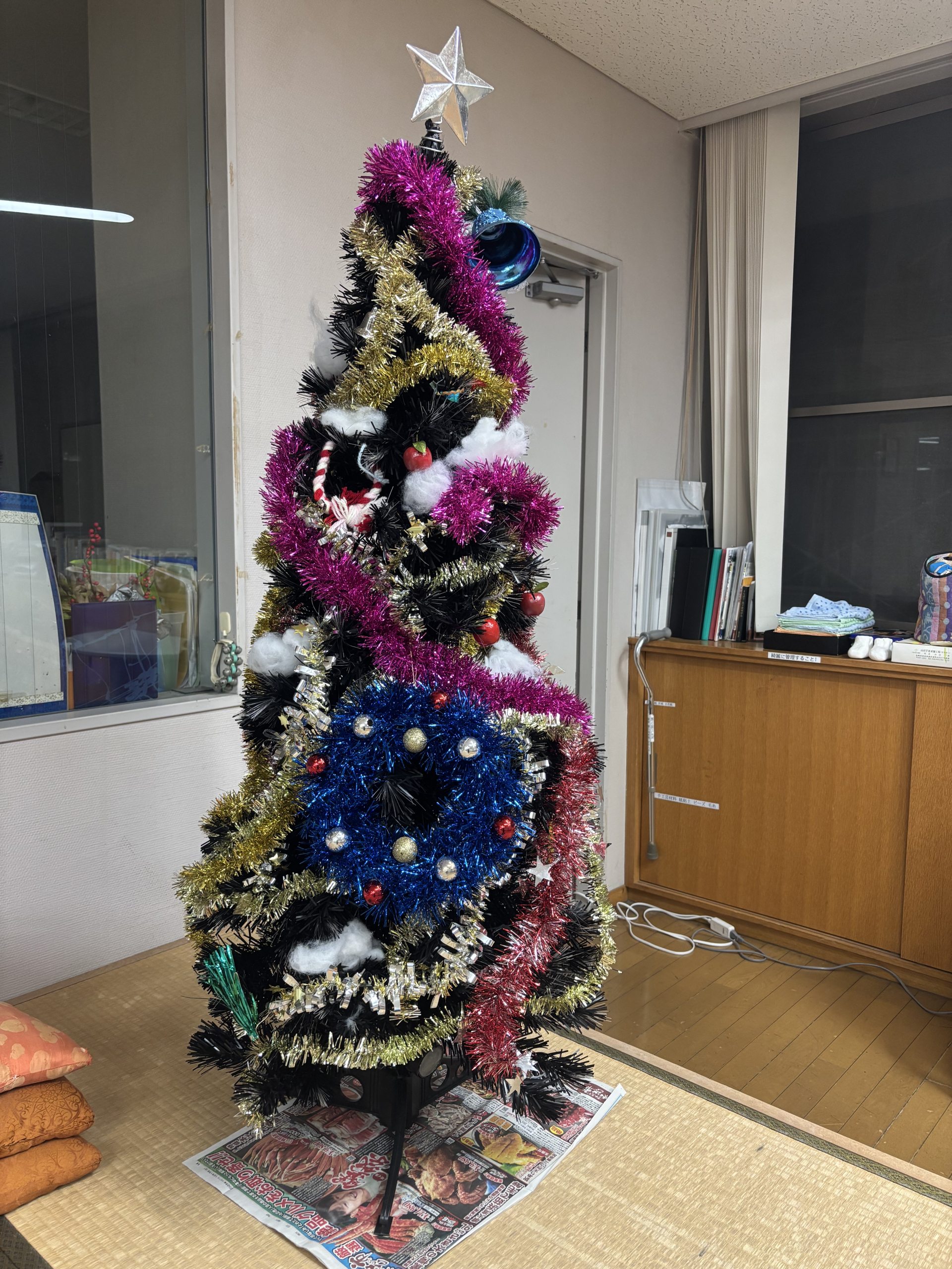 紅葉も見頃を終え冬らしい寒さがやってきた今日この頃、せせらぎデイにはクリスマスツリーが登場しました!