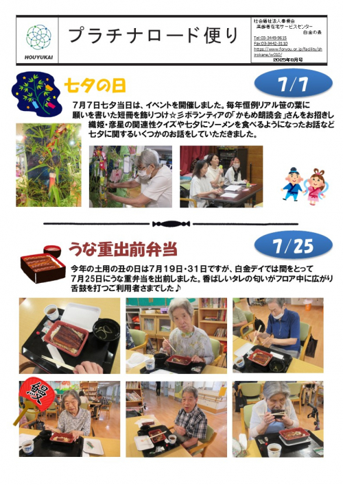2025.12.03 12月のプログラム表 お知らせ #港区 #白金の森デイサービス #イベント #ボランティア #12月のプログラム 2025.12.01 今年も事例研究発表会に出席してきました…! 活動報告 #奉優会 #デイサービス #レクリエーション #福祉 #イベント #事例研究発表会 2025.12.01 12月の広報誌 お知らせ #港区 #白金の森デイサービス #イベント #お知らせ 2025.11.24 【イベント準備】運動会に向けてタコが豊漁!? 活動報告 #港区 #白金の森デイサービス #イベント #運動会 #準備 #万国旗 #タコ 2025.11.10 【イベント】「甘いものは別腹!」ケーキバイキング☆ 活動報告 #港区 #白金の森デイサービス #ケーキバイキング #イベント 2025.11.03 11月のプログラム表 お知らせ #港区 #白金の森デイサービス #イベント #11月のプログラム #ボランティア 2025.11.01 11月イベントのお知らせ お知らせ #港区 #白金の森デイサービス #イベント #紅葉ドライブ #ケーキバイキング #運動会 #11月お知らせ 2025.11.01 11月の広報誌 お知らせ #港区 #白金の森デイサービス #広報誌 #イベント #お知らせ 2025.10.31 秋の一大イベント 活動報告 #奉優会 #デイサービス #レクリエーション #イベント #港区 2025.10.16 【レク】ぼっちゃでテーブル対抗! 活動報告 #奉優会 #デイサービス #レクリエーション #介護 #イベント #ボッチャ 2025.10.16 【出前弁当】秋香る松茸ご飯と手まり寿司 活動報告 #奉優会 #レクリエーション #介護 #福祉 #イベント #出前弁当 2025.10.13 【かもめ朗読会】「椰子の実」「ここに幸あり」ほか 活動報告 #奉優会 #デイサービス #レクリエーション #介護 #福祉 #イベント #かもめ朗読会 2025.10.10 【フラワーセラピー】かぼちゃのバスに乗って… 活動報告 #レクリエーション #福祉 #イベント #フラワーセラピー 2025.10.04 【ハロウィン】イベント本番に向けて、ご利用者と一緒に楽しく準備☆ 活動報告 #港区 #白金の森デイサービス #ハロウィン #イベント 2025.10.01 10月のプログラム表 お知らせ #奉優会 #レクリエーション #福祉 #イベント #プログラム表 1 2 3 … 13
