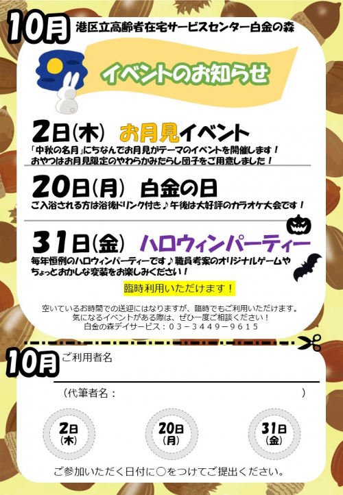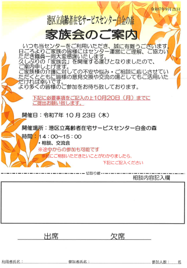 2025.10.31 秋の一大イベント 活動報告 #奉優会 #デイサービス #レクリエーション #イベント #港区 2025.10.31 限定ゲームでハロウィンパーティー☆ 活動報告 #奉優会 #ハロウィン 2025.10.25 今月の折り紙 活動報告 #奉優会 #デイサービス #レクリエーション #脳トレ #港区 2025.10.18 【地域交流】高輪消防団と綱引き体験 活動報告 #奉優会 #レクリエーション #地域交流 2025.10.16 【レク】ぼっちゃでテーブル対抗! 活動報告 #奉優会 #デイサービス #レクリエーション #介護 #イベント #ボッチャ 2025.10.16 【出前弁当】秋香る松茸ご飯と手まり寿司 活動報告 #奉優会 #レクリエーション #介護 #福祉 #イベント #出前弁当 2025.10.13 【かもめ朗読会】「椰子の実」「ここに幸あり」ほか 活動報告 #奉優会 #デイサービス #レクリエーション #介護 #福祉 #イベント #かもめ朗読会 2025.10.01 10月の献立表 お知らせ #奉優会 #介護 #献立表 2025.10.01 10月のプログラム表 お知らせ #奉優会 #レクリエーション #福祉 #イベント #プログラム表 2025.10.01 10月の広報誌 お知らせ #奉優会 #レクリエーション #介護 #福祉 #イベント #広報誌 2025.10.01 10月イベントのお知らせ お知らせ #奉優会 #レクリエーション #介護 #イベント #港区 #レク 2025.09.30 お買い物ゲームで注文! 活動報告 #奉優会 #レクリエーション #福祉 #イベント 2025.09.29 塗り絵で深まる仲 活動報告 #奉優会 #デイサービス #介護 #福祉 #塗り絵 2025.09.24 家族会のお知らせ 活動報告 #奉優会 #イベント #港区 2025.09.24 秋の味覚!出前企画! 活動報告 #奉優会 #イベント #港区 1 2 3 … 10