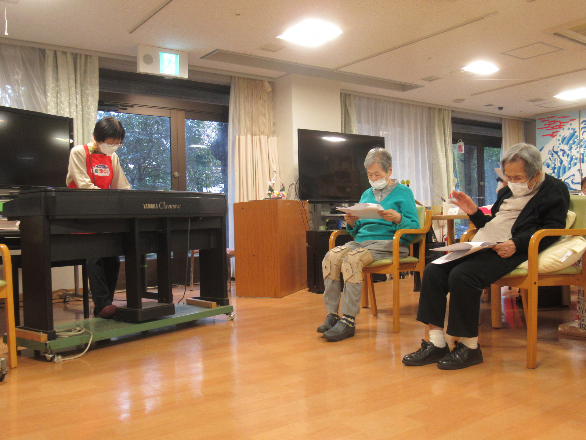 『どじょっこ・ふなっこ』『春の小川』など、今回も季節の歌を中心にたくさんの歌を、みなさんと一緒に歌ってくださいました♪ご利用者のみなさんも「懐かしい歌ばっかりでうれしいね~」と目を細めてらっしゃいました。