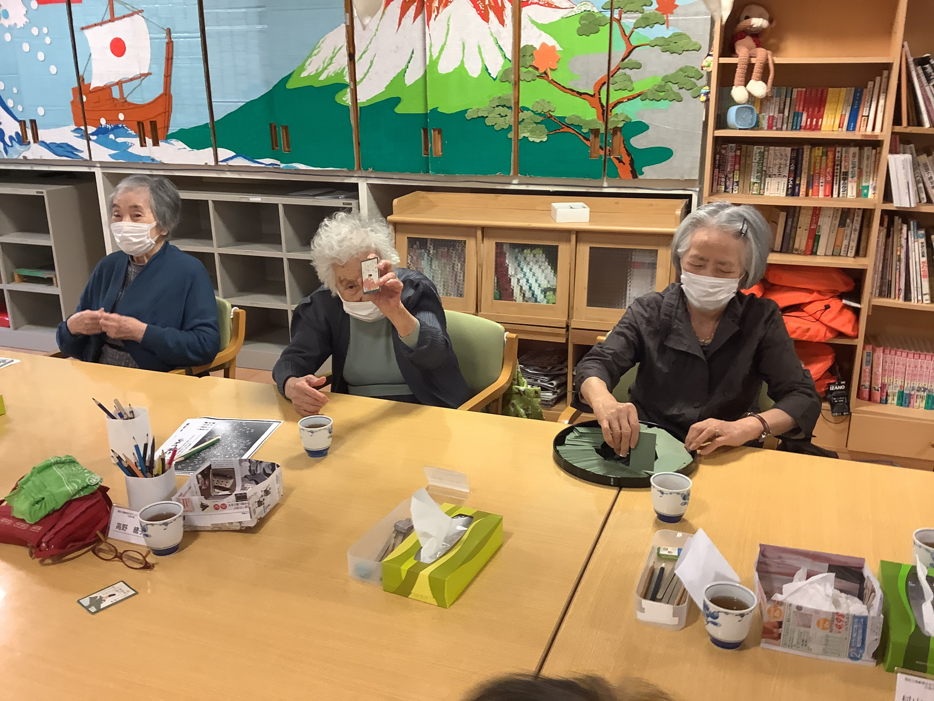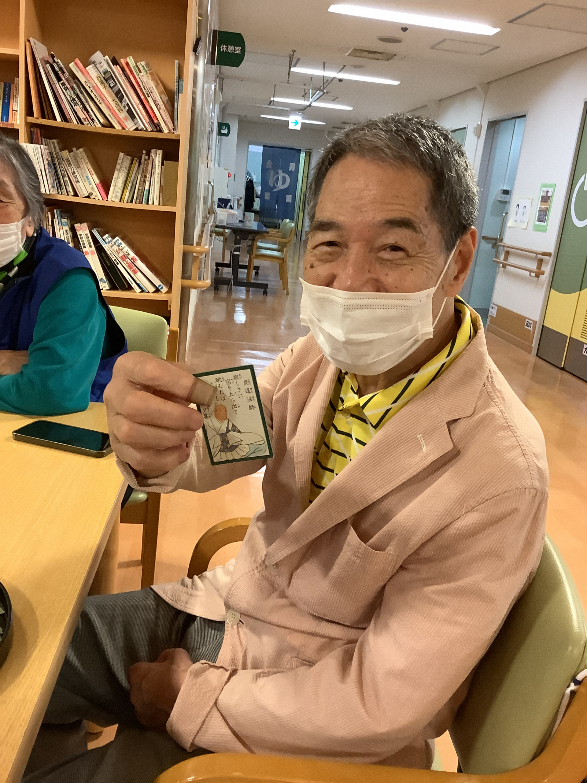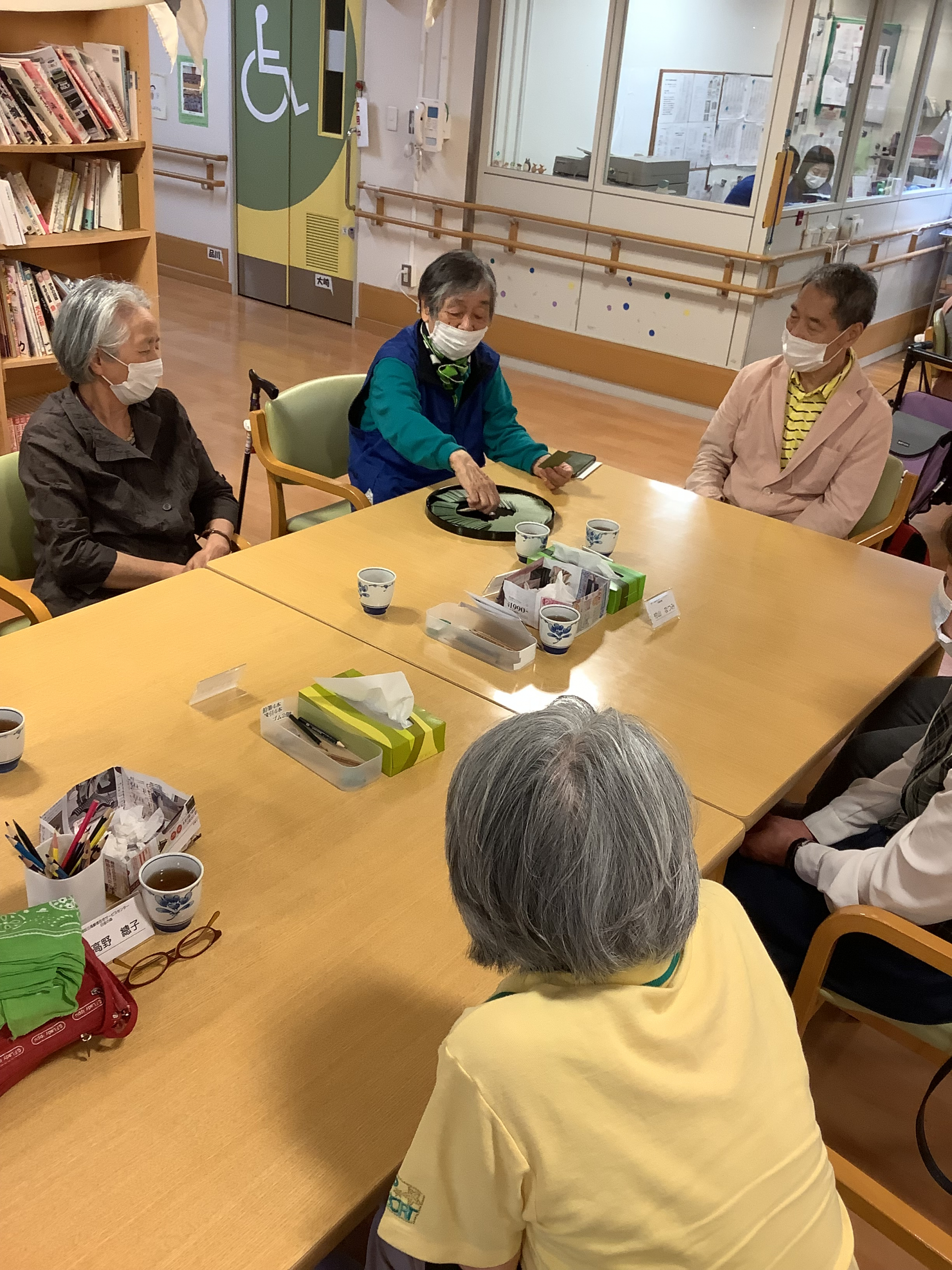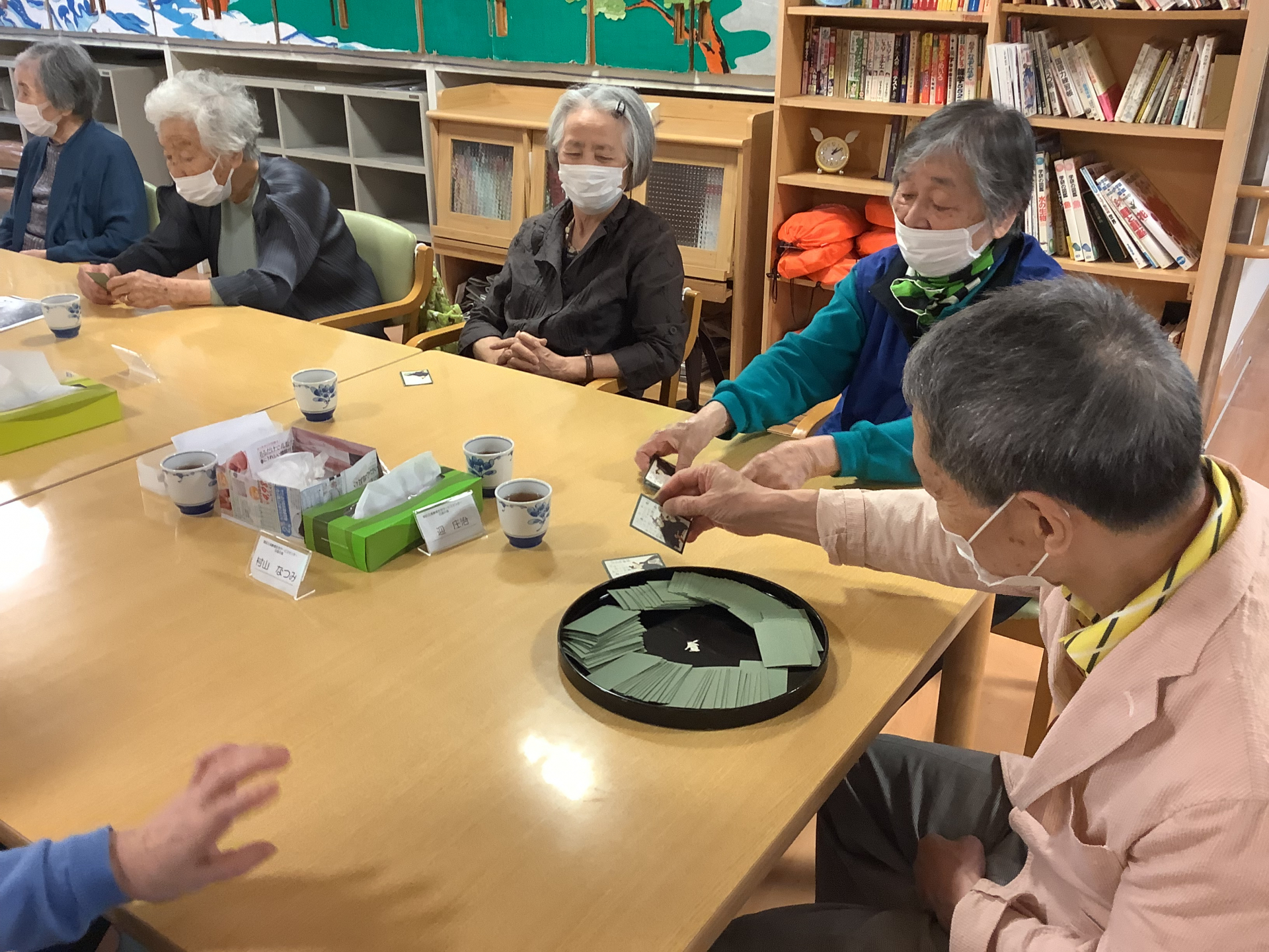 白金の森デイサービスでは昼食後、午後のレクリエーションが始まるまでのひとときは、みなさん思い思いに過ごされています。今日は「坊主めくり」に興じられているテーブルの様子をご紹介します!