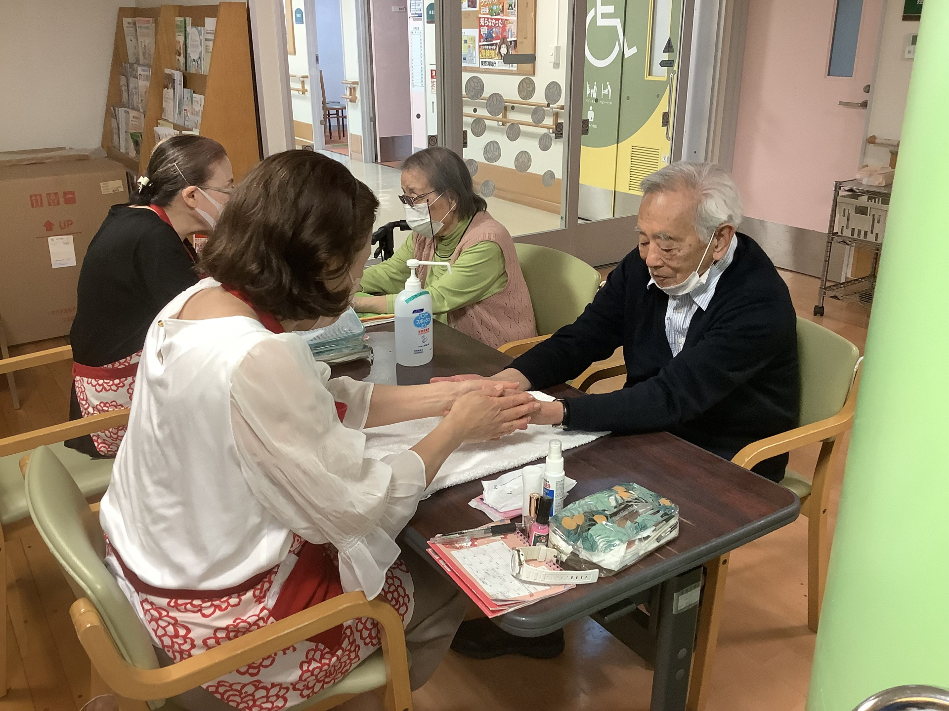 今日はボランティア「プラチナ美容塾」のみなさんによる、月に一度のハンドマッサージ&ネイルケアの日!