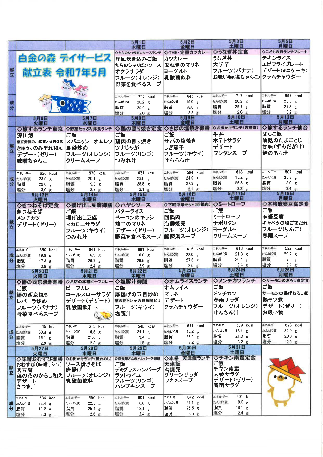 2025.05.01 お知らせ 5月の献立 Tweet シェアする 5月の献立を配布しました。 #奉優会 #介護 #福祉 #献立表 前の記事 2025.05.01 お知らせ 【午後レク】コグニサイズ・輪唱・ボッチャ・ハンドベル♪ 次の記事 2025.05.01 お知らせ 5月のイベントのお知らせ 一覧へ戻る