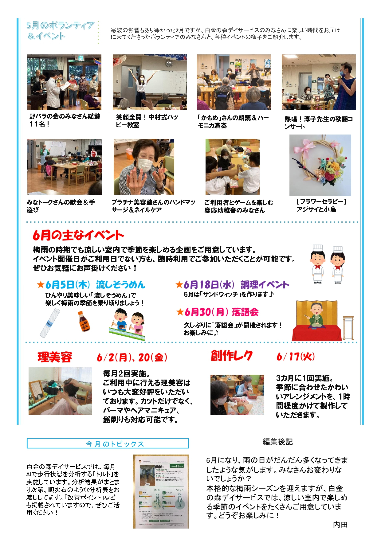 2025.06.03 お知らせ 6月の広報誌 Tweet シェアする 6月の広報誌を更新しました。 Y.H #奉優会 #レクリエーション #介護 #福祉 #イベント 前の記事 2025.06.05 お知らせ 【イベント】楽しい!涼しい!美味しい!流しそうめん食べ放題☆ 次の記事 2025.06.03 お知らせ 【みなトーク会】「ケロケロケロケロケロー!」で拍手喝采☆ 一覧へ戻る