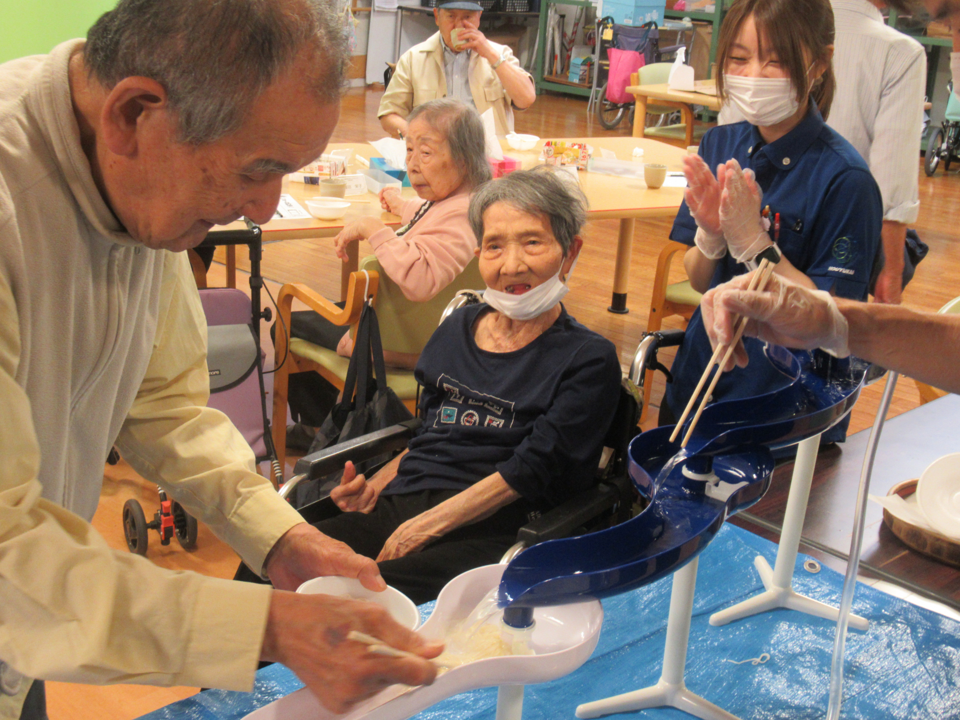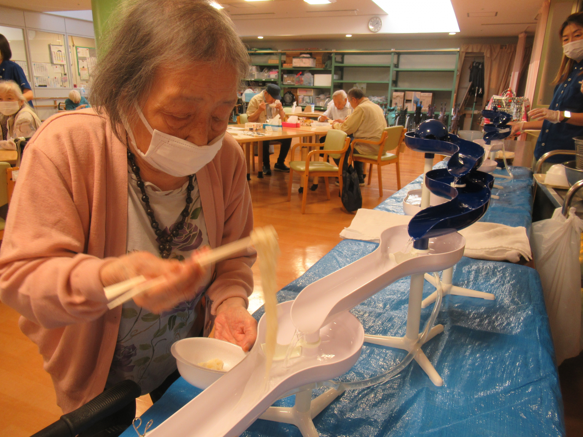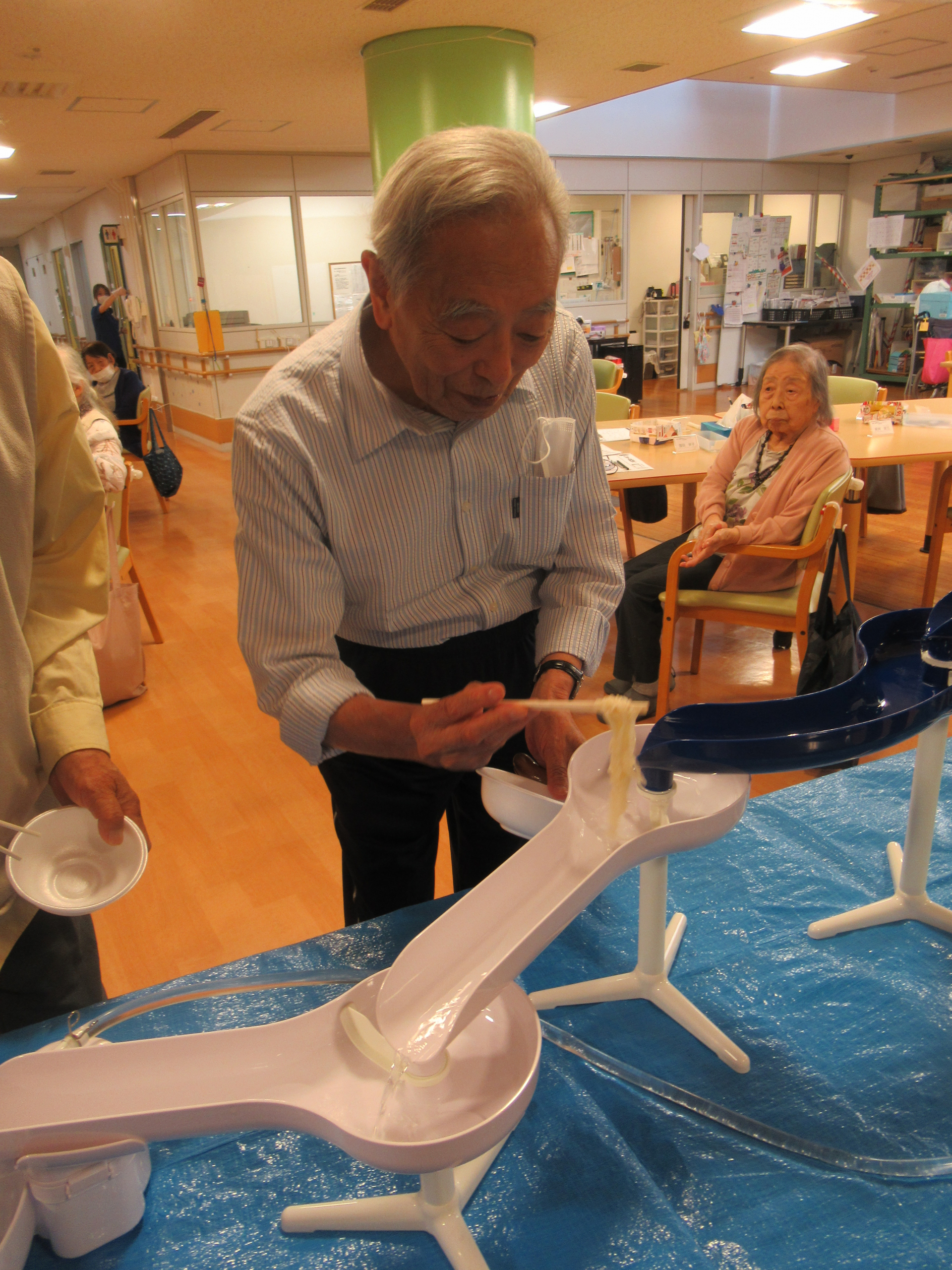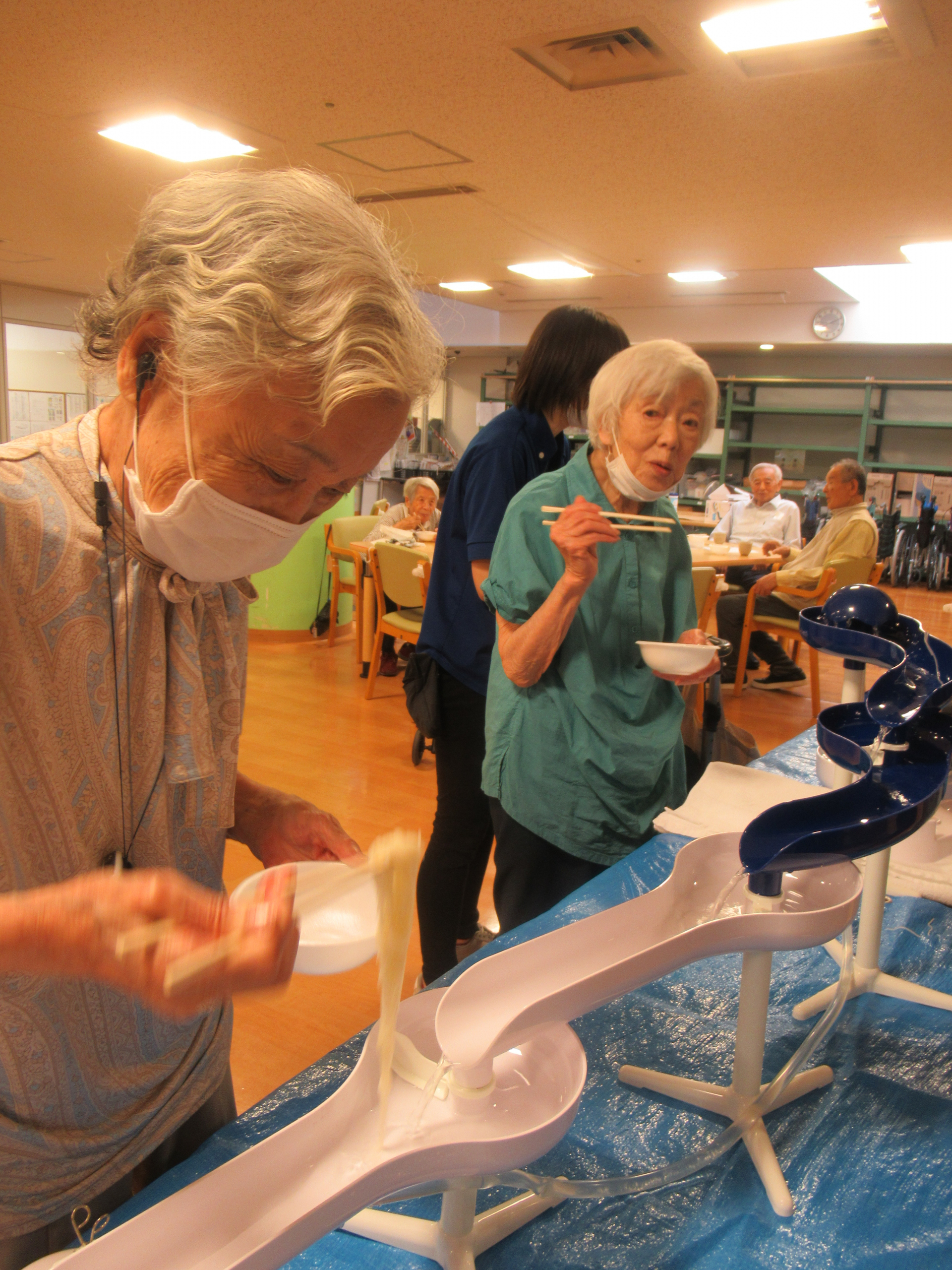 白金の森デイサービスが誇る2台の流しそうめん機をフル稼働して、流しそうめん食べ放題を実施しました☆