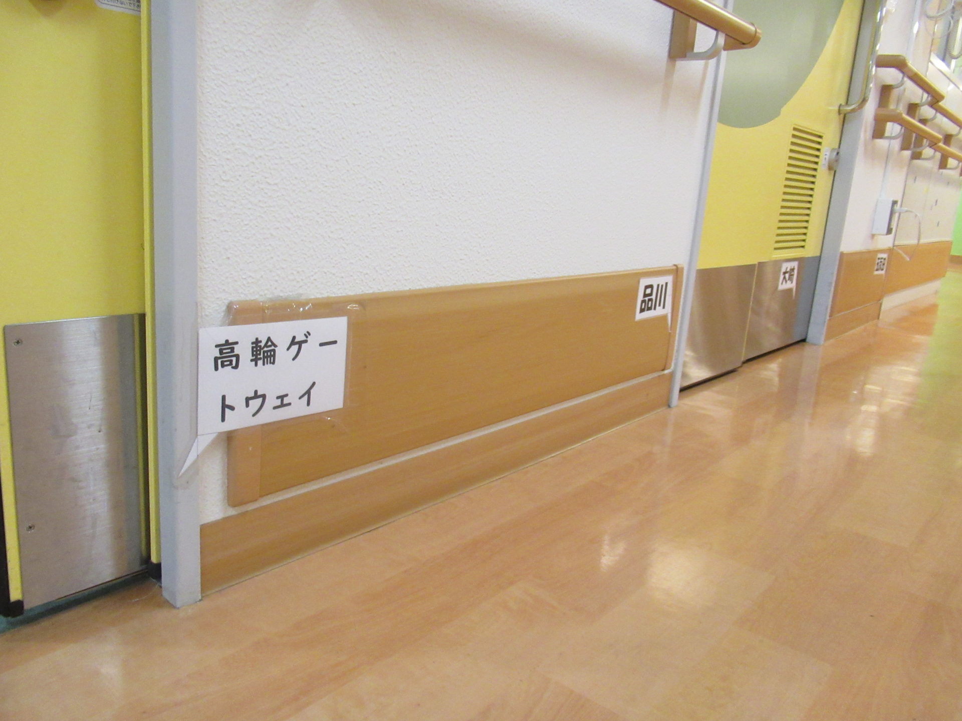 また、楽しく歩いてもらうために、歩行訓練で歩く白金の森デイサービスの廊下には山手線の駅名がずらりと並び「山手線一周」ができるようになっています。今日も歩行訓練をしながら「職場があったから、よく新宿で降りたのを思い出す」と話すご利用者がいらっしゃいました。「山手線一周」は歩行訓練ができ、昔を思い出しながらコミュニケーションも取れる、一石二鳥の散歩コースです☆