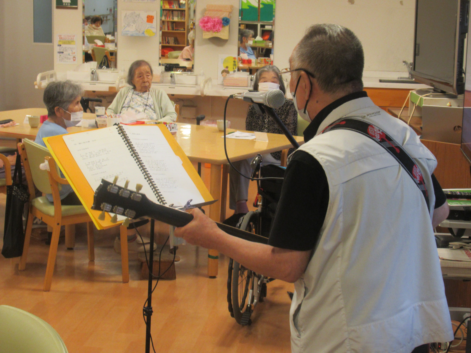 今日は、エレキギターの生演奏で懐かし歌を聴かせてくださるボランティア、小原さんのコンサートでした!