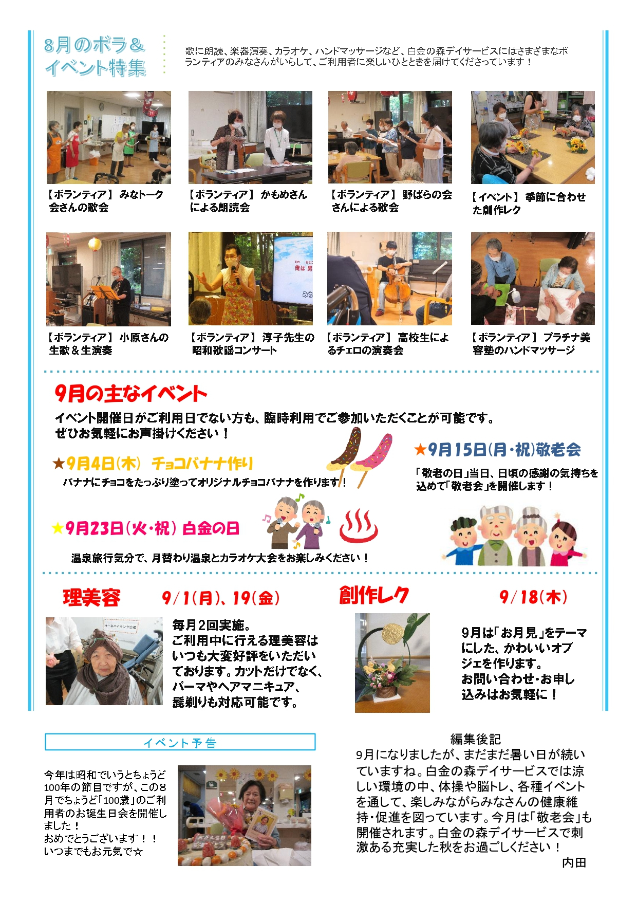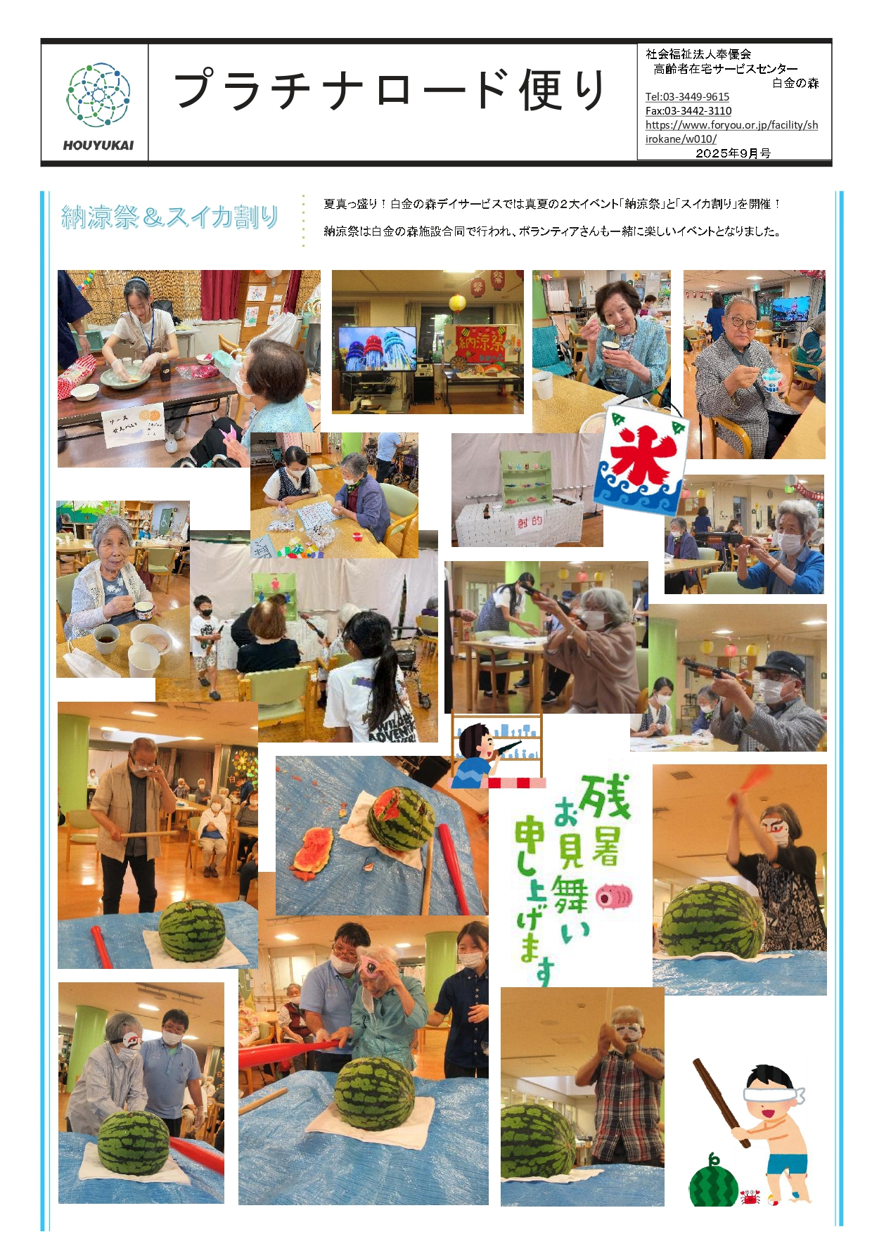 2025.09.01 お知らせ 9月の広報誌 Tweet シェアする 9月の広報誌を発信しました。 #奉優会 #デイサービス #レクリエーション #福祉 #港区 #広報誌 前の記事 2025.09.02 お知らせ 【みなトーク会】園児と一緒に歌でちょっと早めの敬老の日をお祝い☆ 次の記事 2025.09.01 お知らせ 今月の献立表 一覧へ戻る
