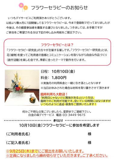 10月フラワーセラピー開催します!