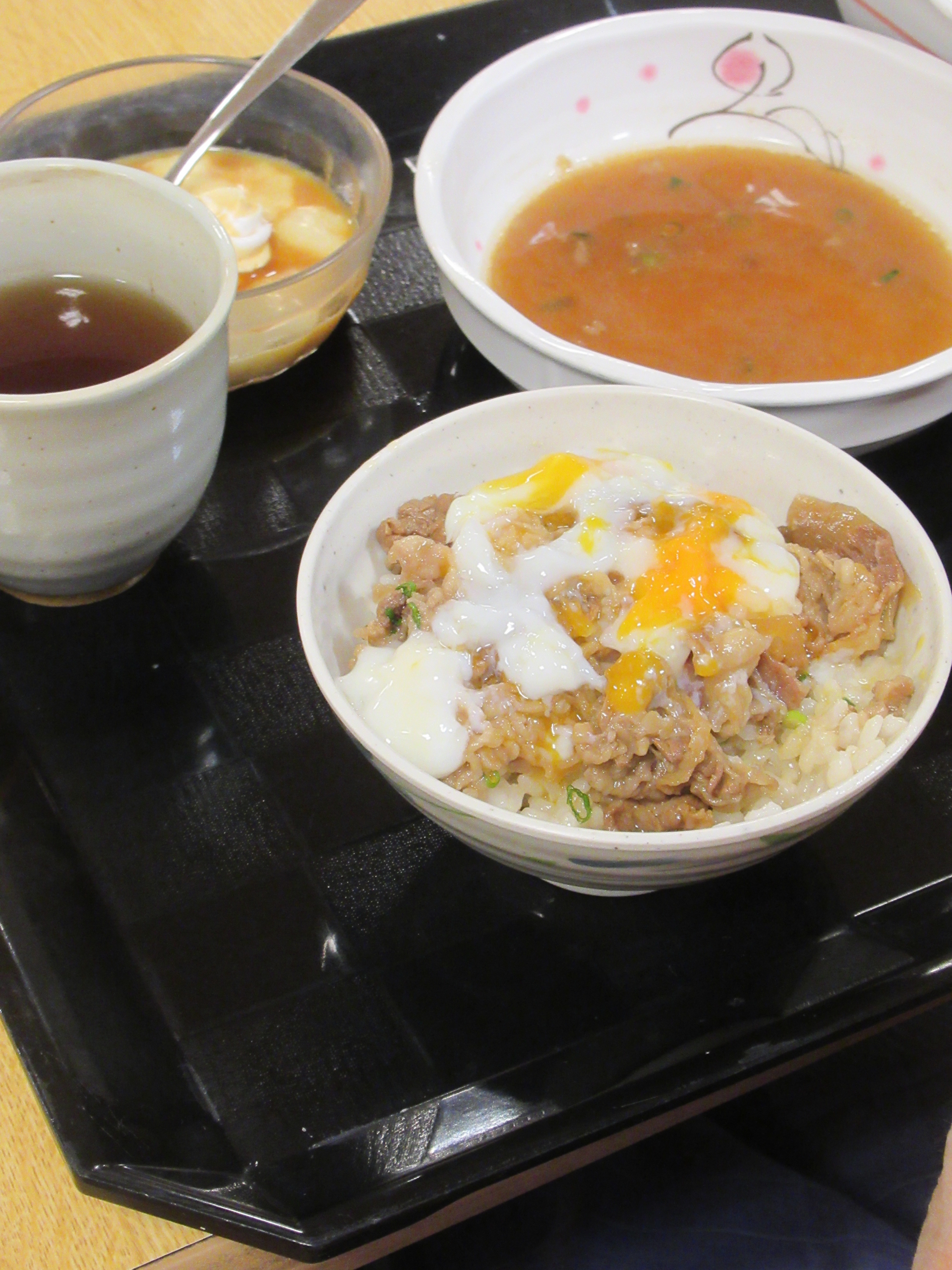 牛皿のスタイルで提供されたメインに温泉卵が付いて、気分は吉野家!