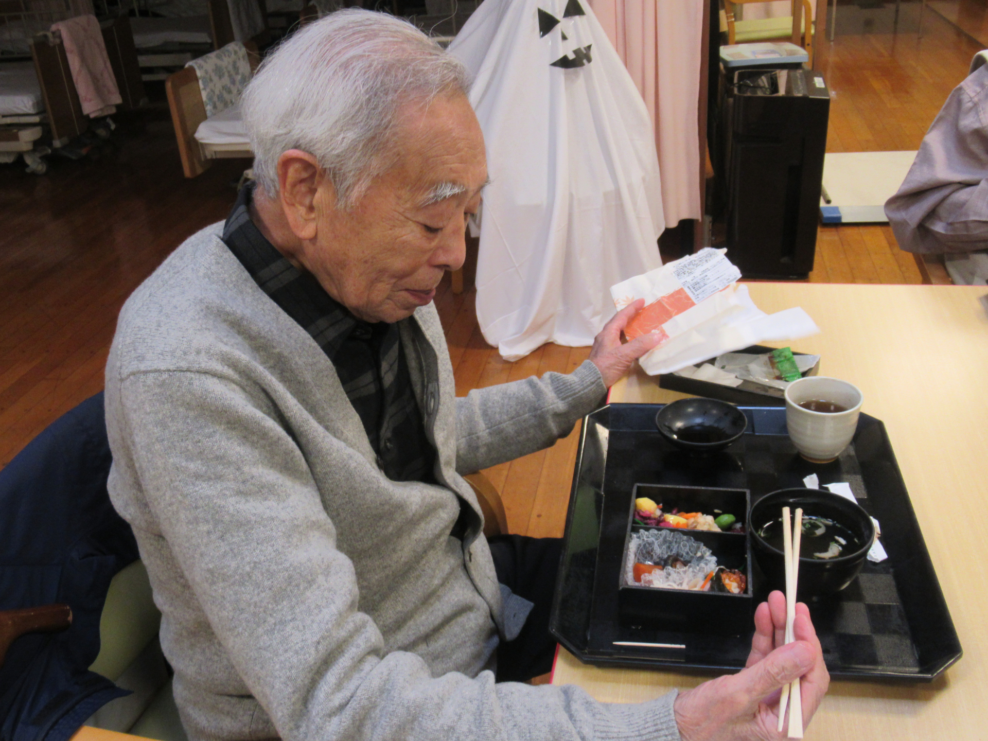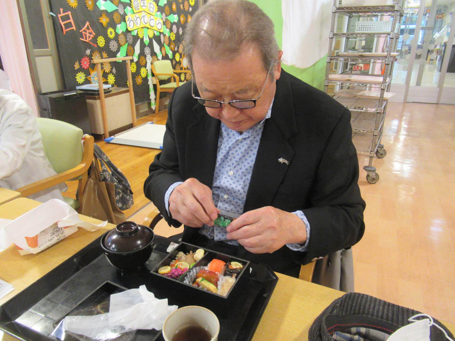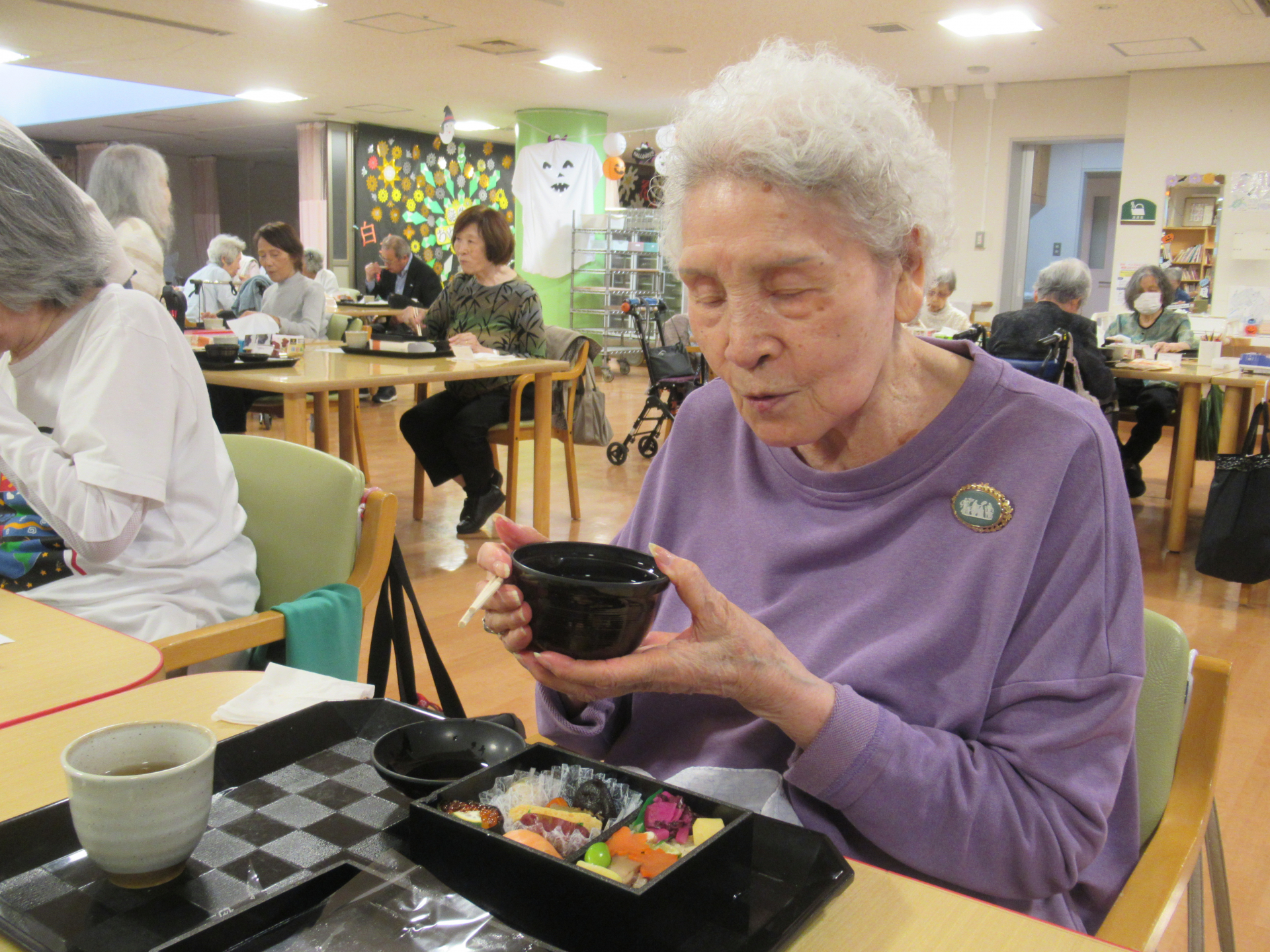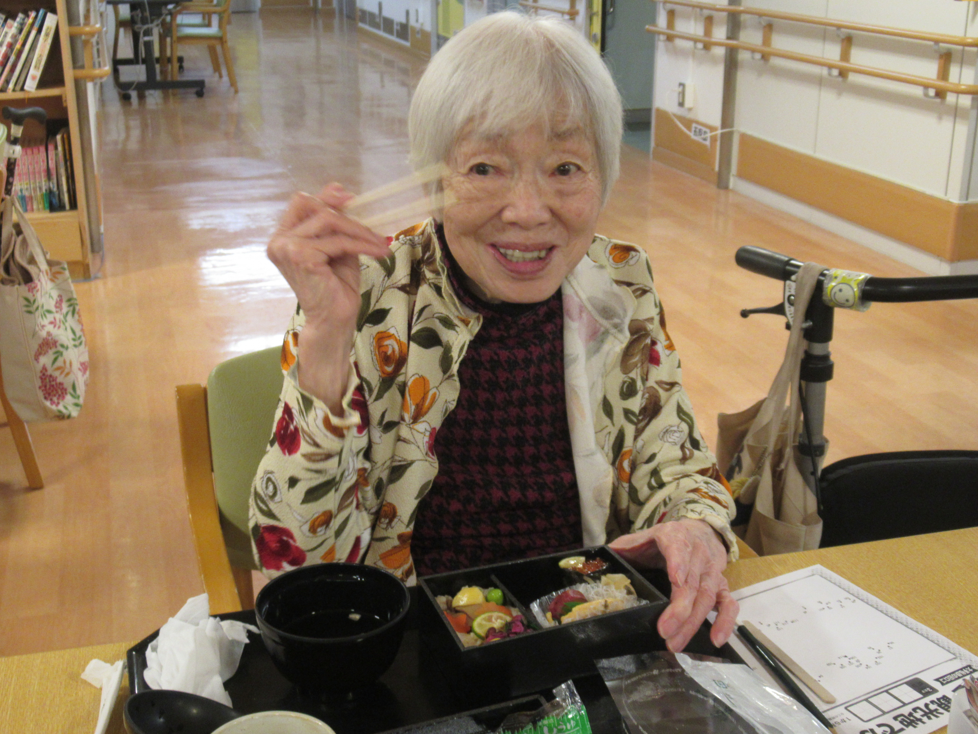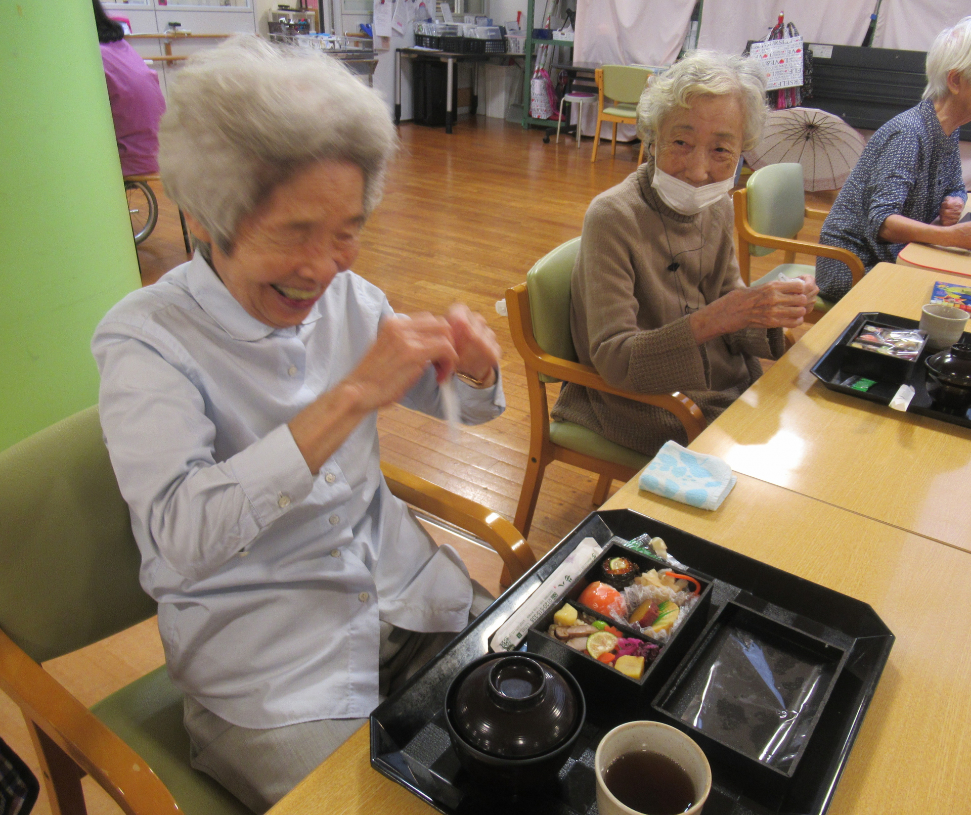 「わ~美味しそう♡」とお隣さんと顔を見合わせる利用者様!
