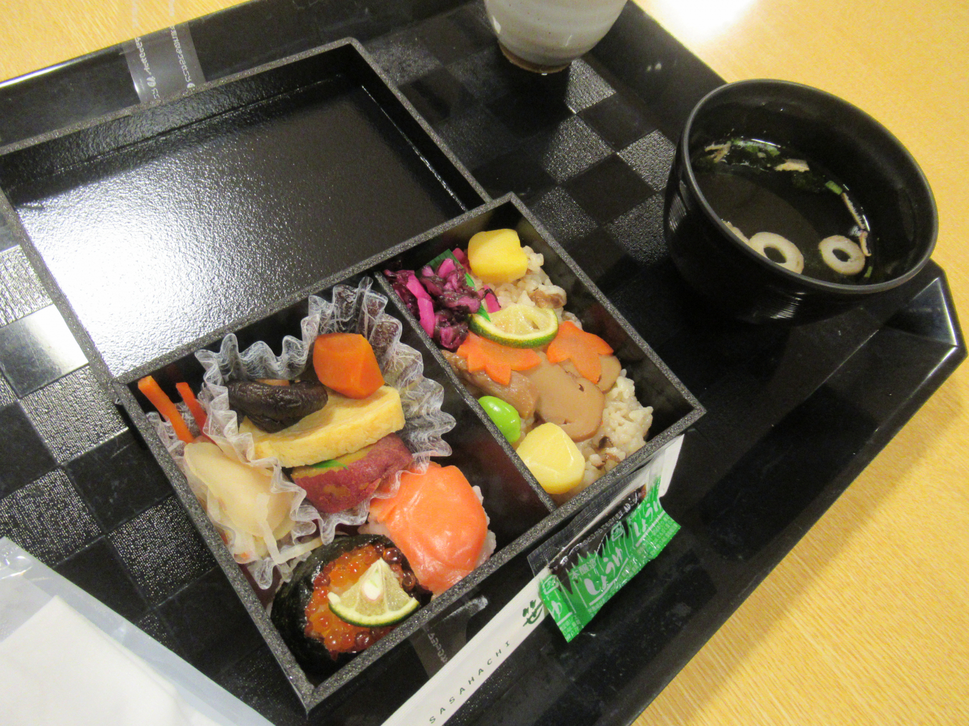 お申込みいただいた方は中谷本舗の「松茸ご飯と手まり寿司弁当」をお召し上がりいただきました♪