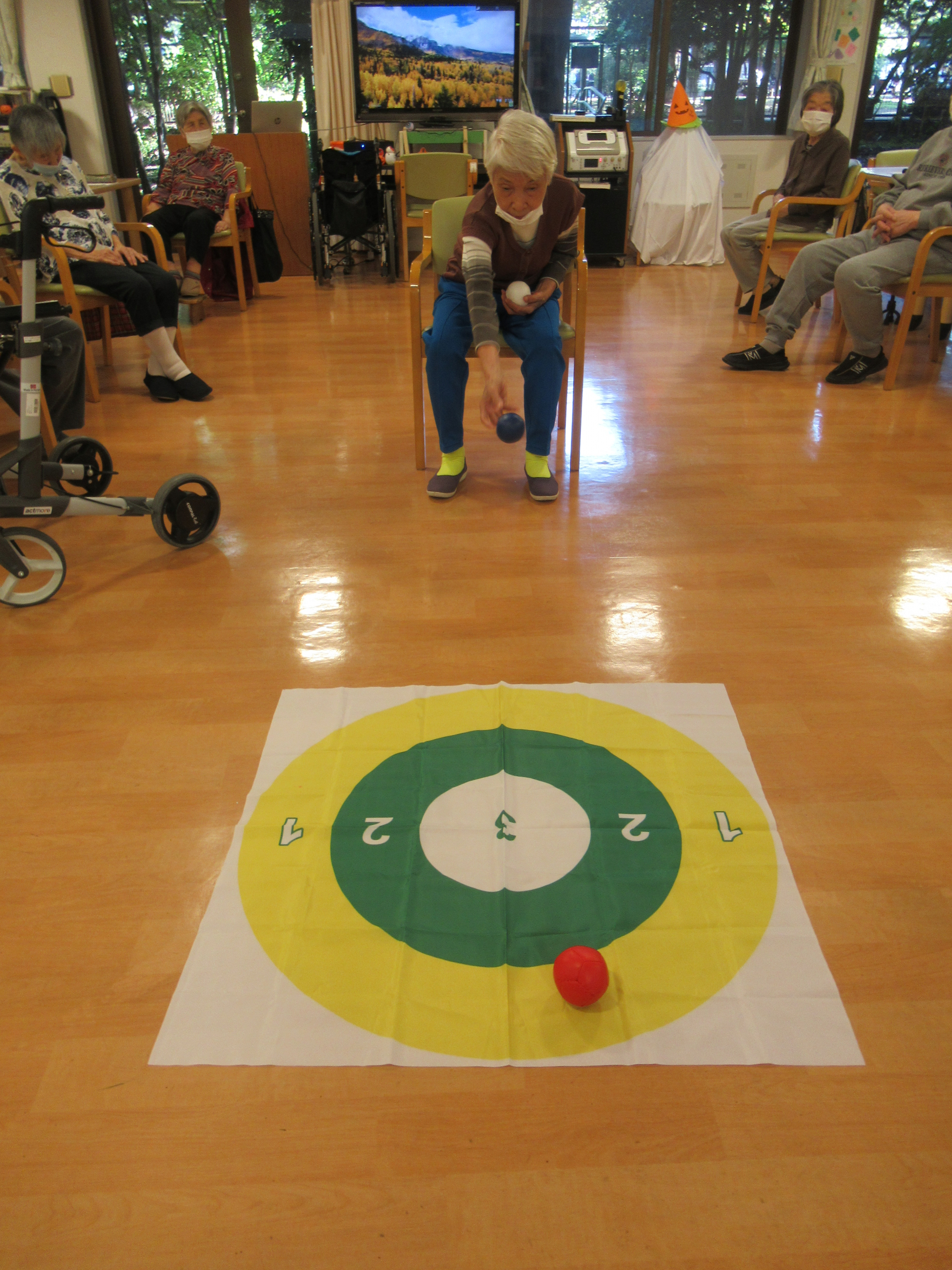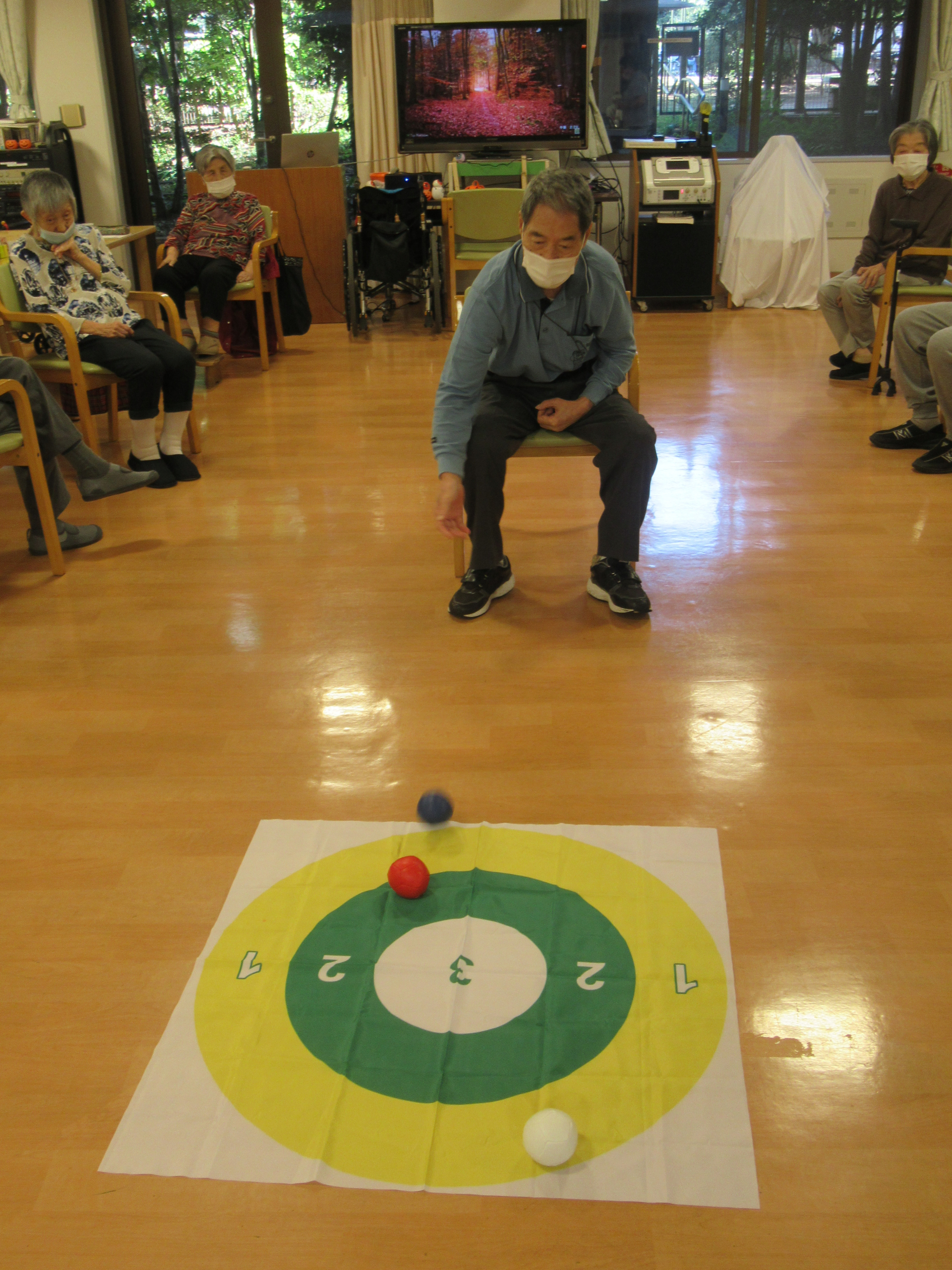 ぼっちゃは真ん中の高得点をめがけてボールを投げあいます