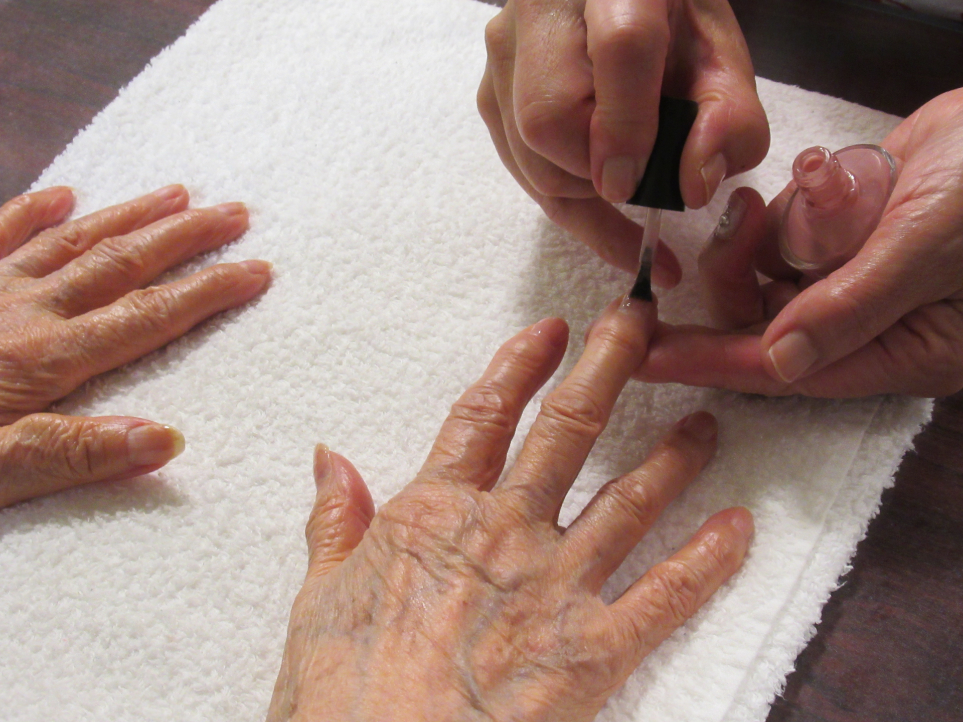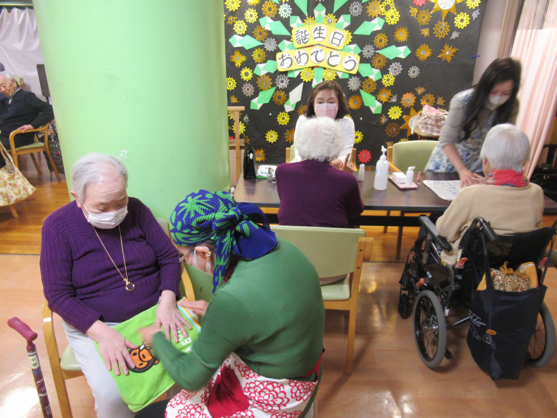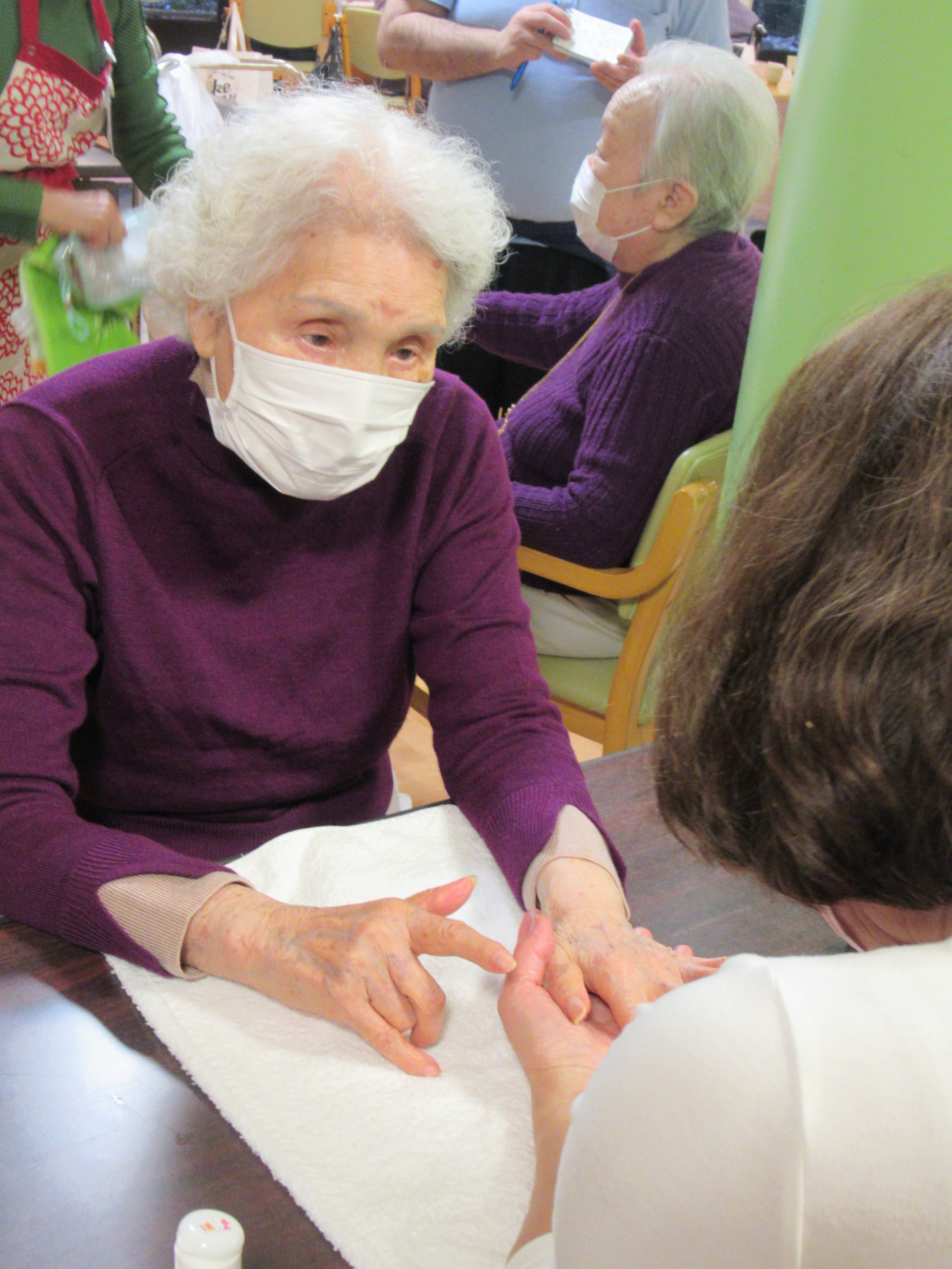 今日はボランティア「プラチナ美容塾」のみなさんが来所され、ご利用者のみなさんにハンドマッサージとネイルケアをしてくださいました!
