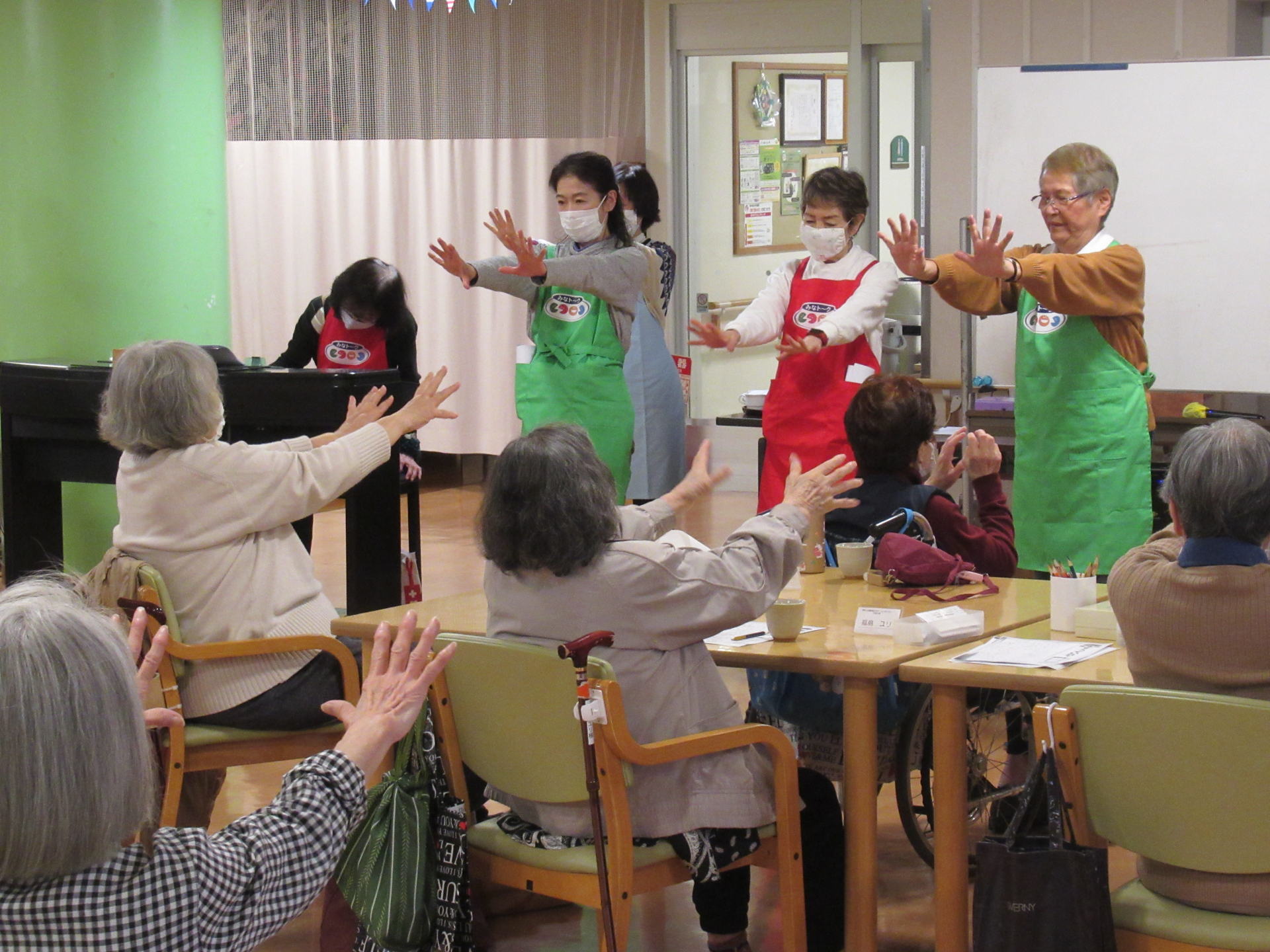 準備体操、発声練習のあと、みなさんおなじみ『肩たたき』からスタート♪