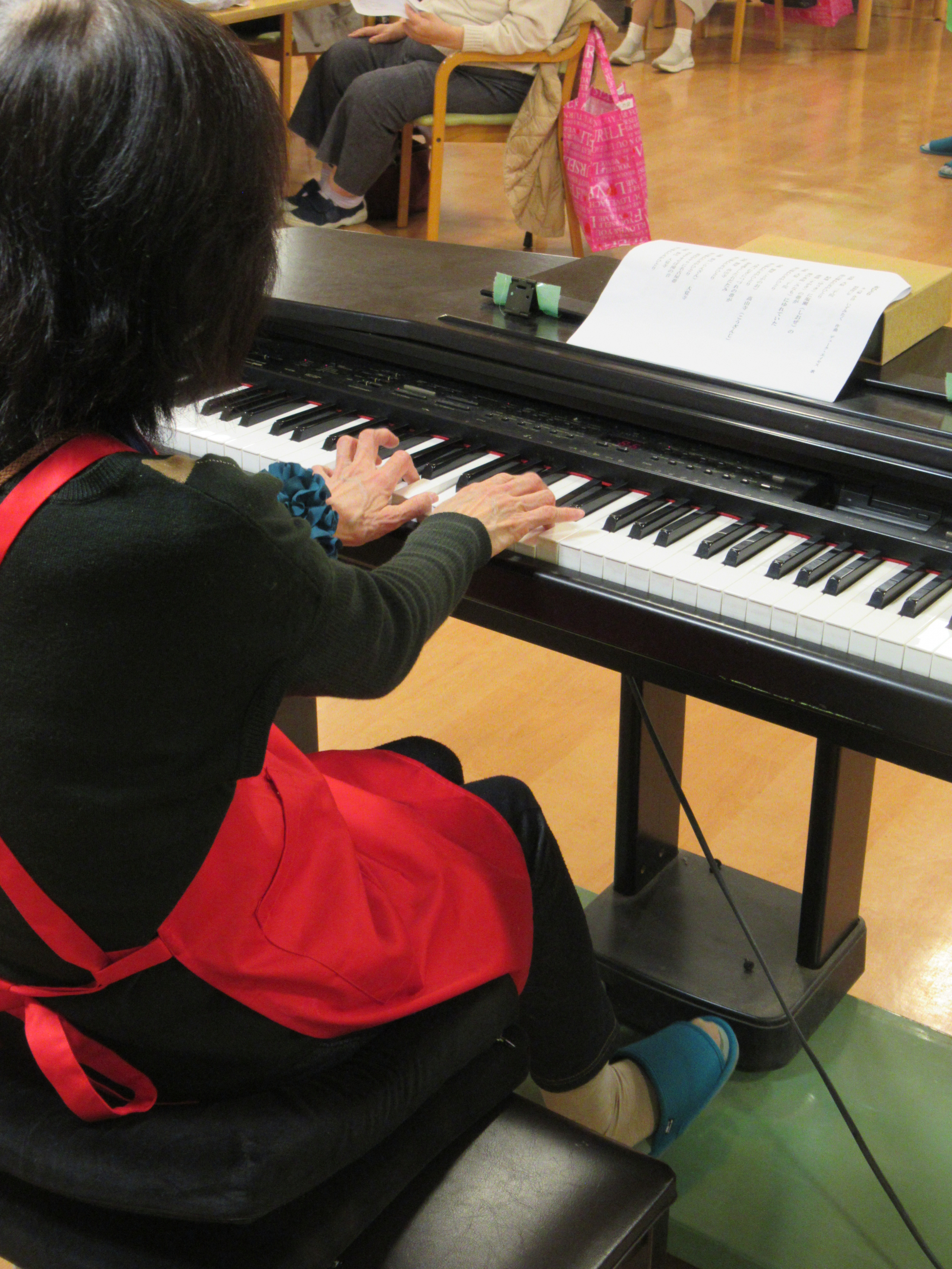 ピアノの演奏に合わせて、ご利用者もい一緒に「たんとん たんとん たんとんとん」とリズミカルに歌っていきます。