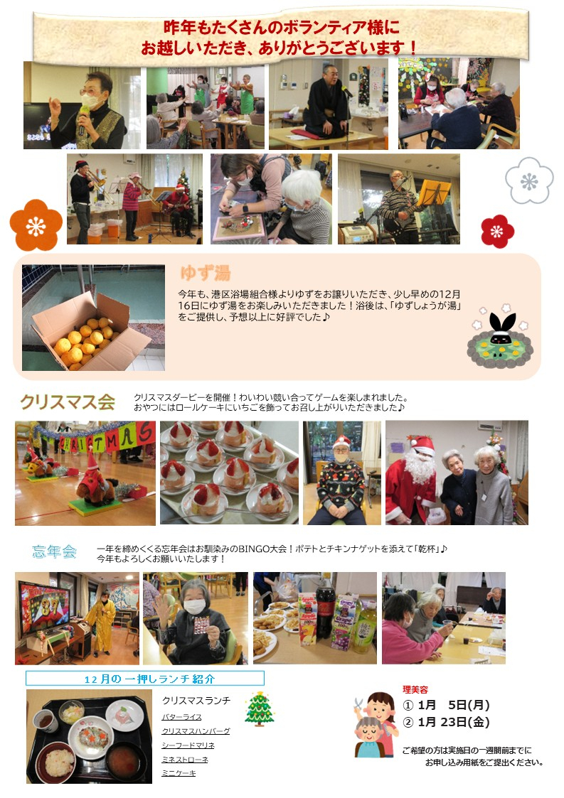 2026.01.05 お知らせ 1月の広報誌 Tweet シェアする 1月の広報誌をアップしました。 前の記事 2026.01.05 お知らせ 1月のイベントお知らせ 次の記事 2026.01.05 お知らせ 新春ヘアカット☆今年もよろしくお願いいたします! 一覧へ戻る