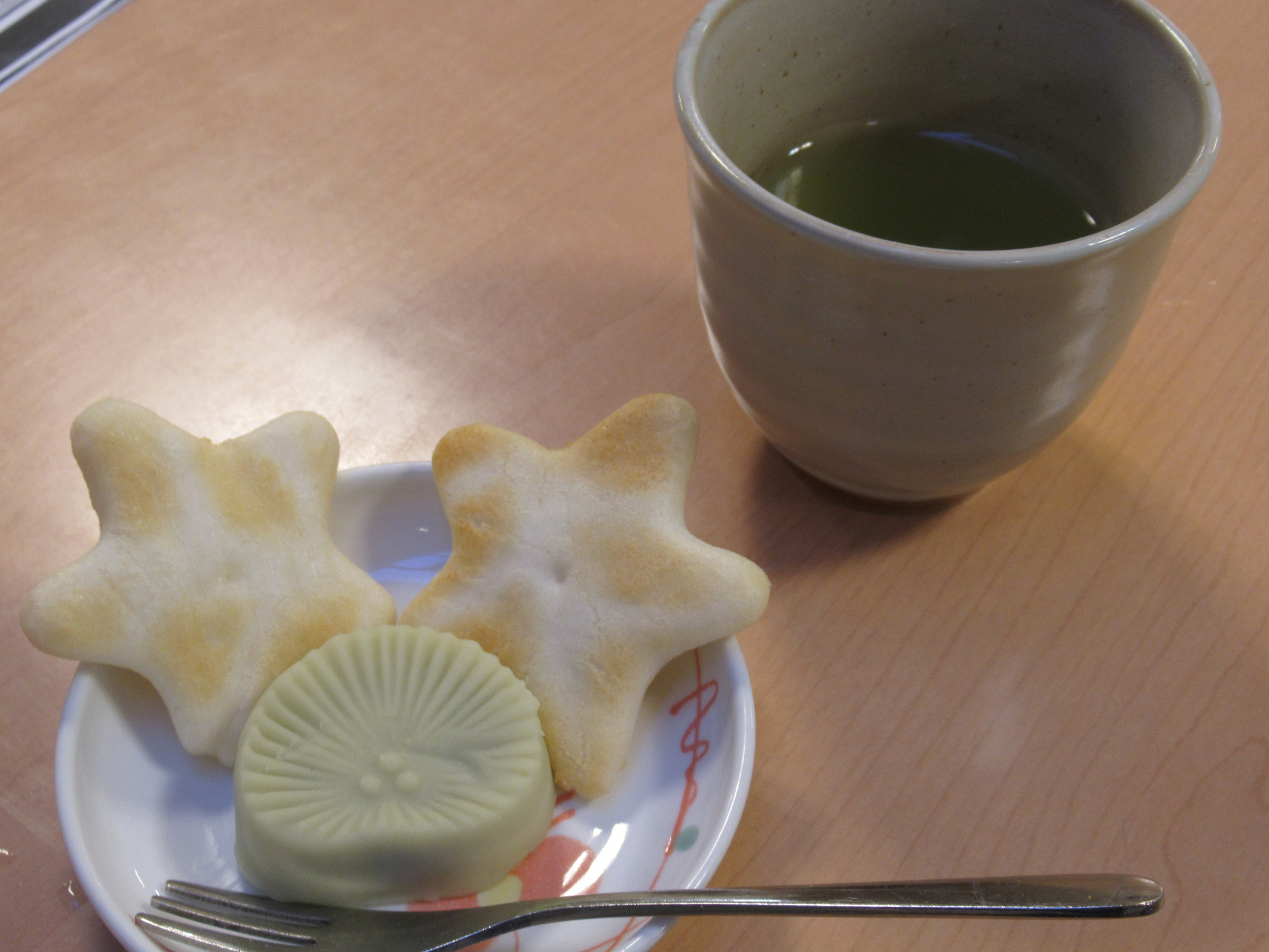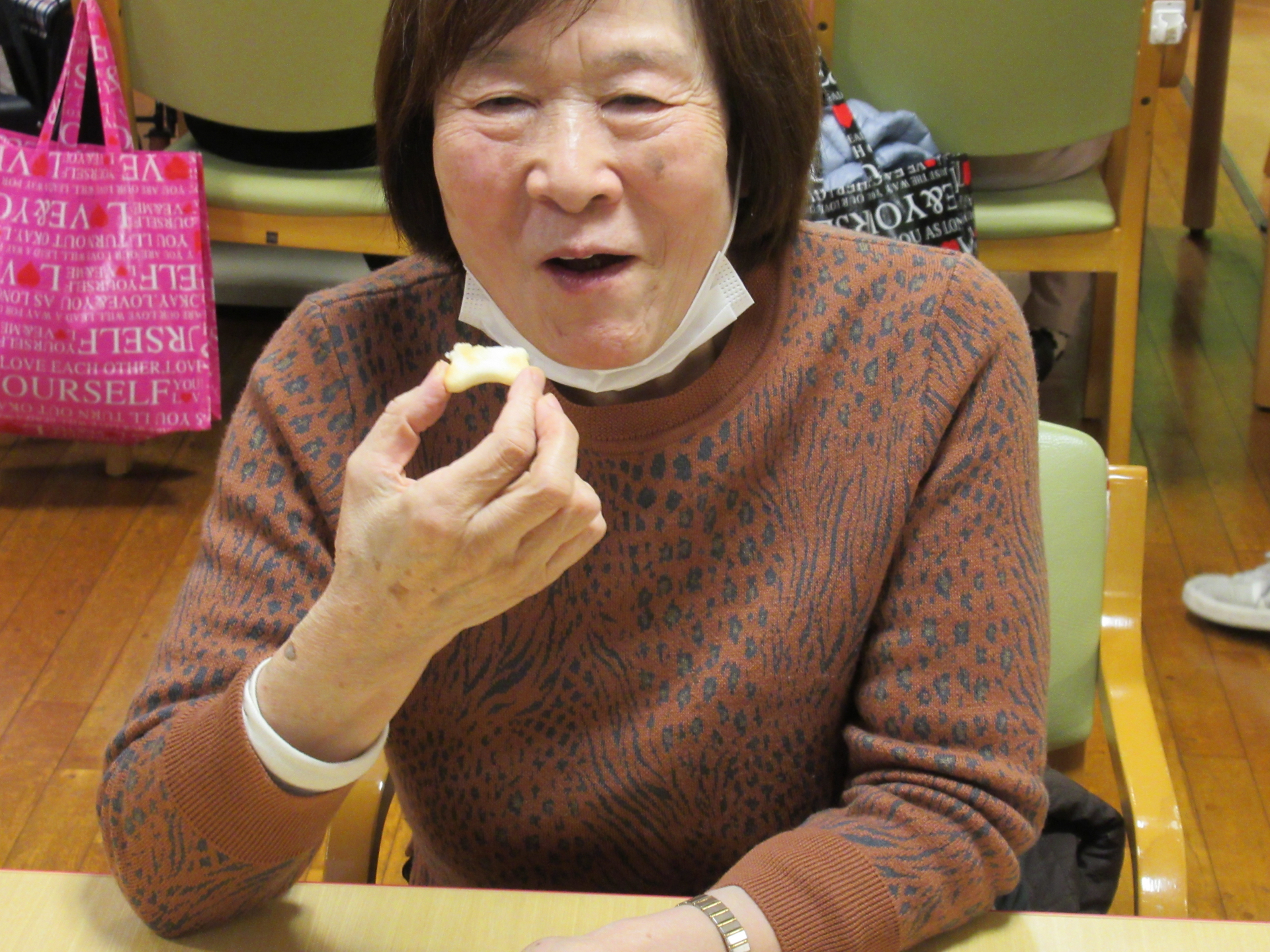 レク後のおやつは、おせんべいと和菓子(練り切り)に加え、新年会ということでいつもよりちょっと良いお茶(笑)をご用意!