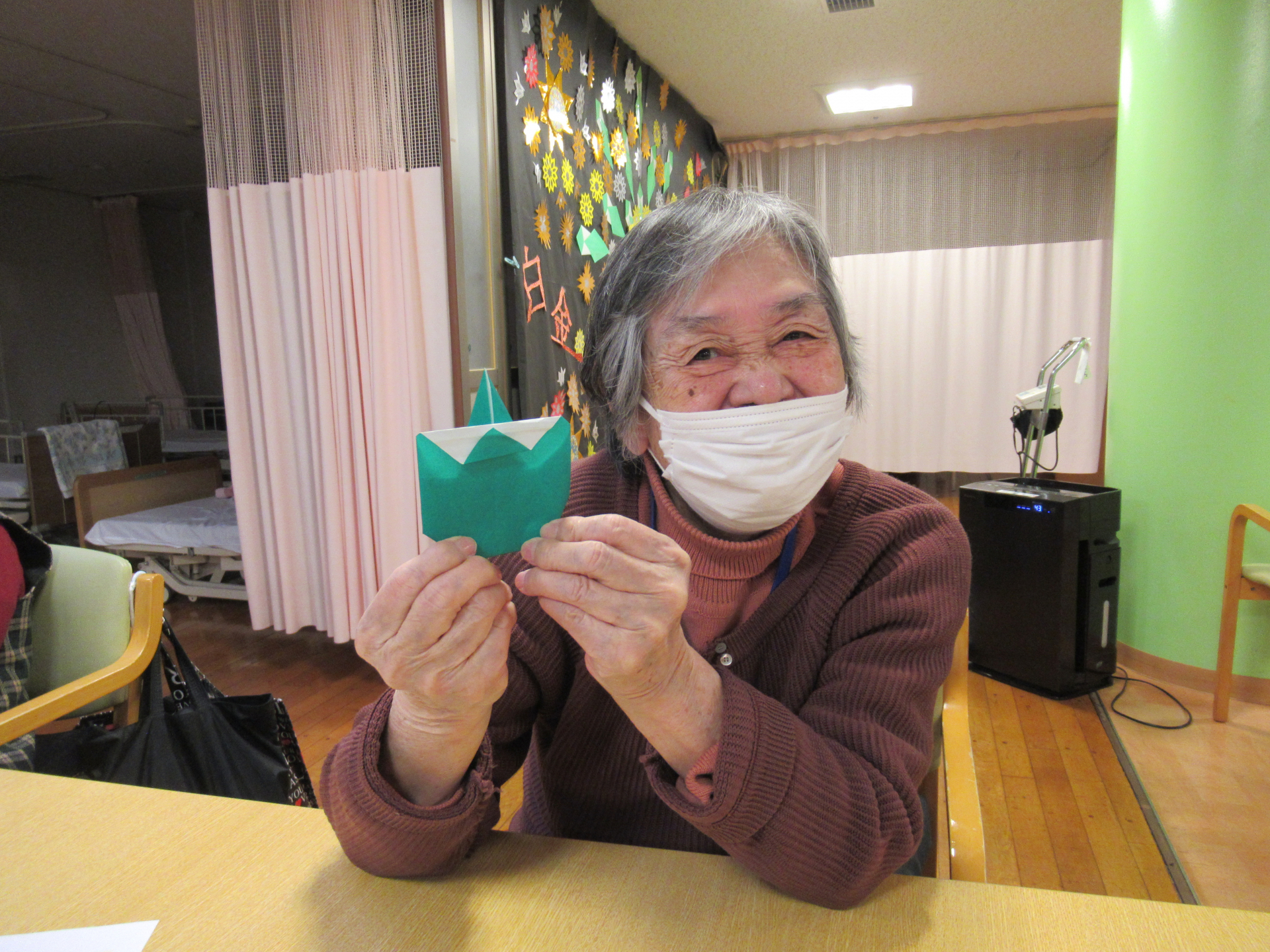 そこで今日は、折り紙プログラムとして「鬼の折り紙」に挑戦です!