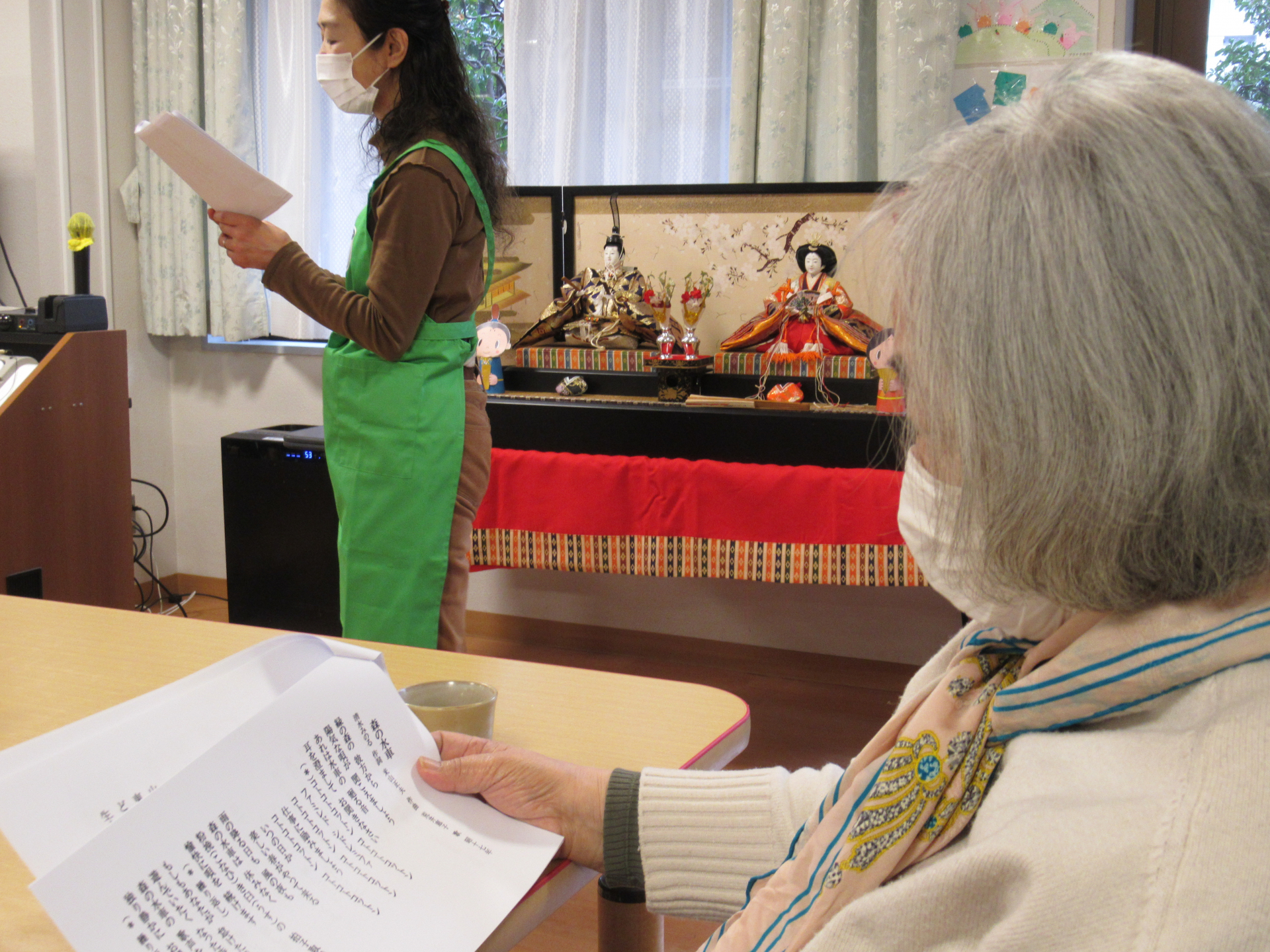 ひな祭りの3月3日、白金の森デイサービスの午後レクは、ボランティア「みなトーク会」のみなさんによる歌会でした!
