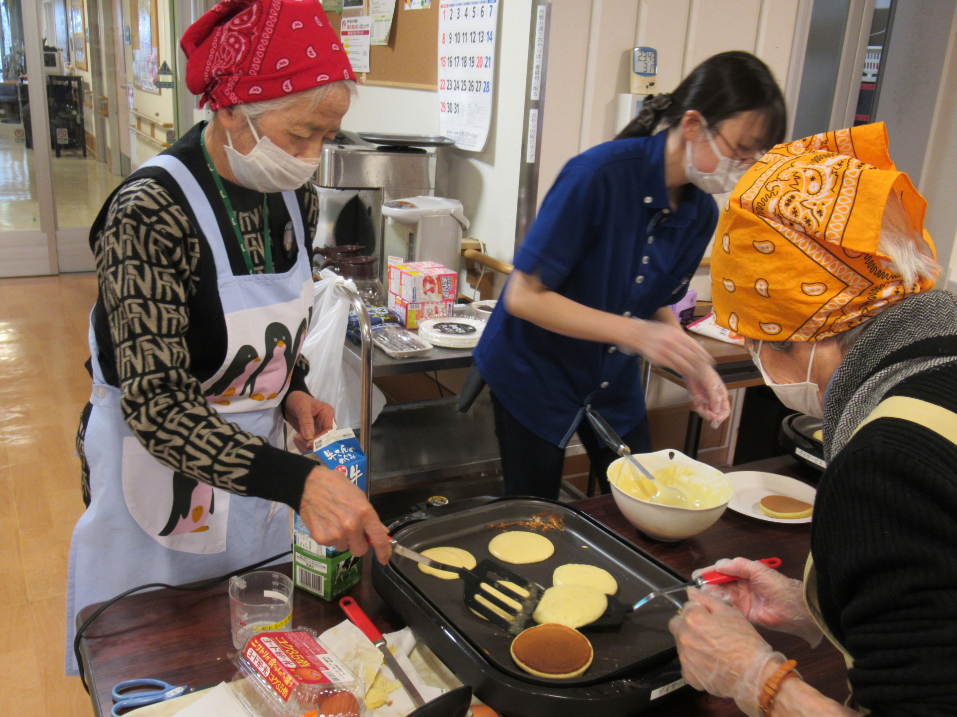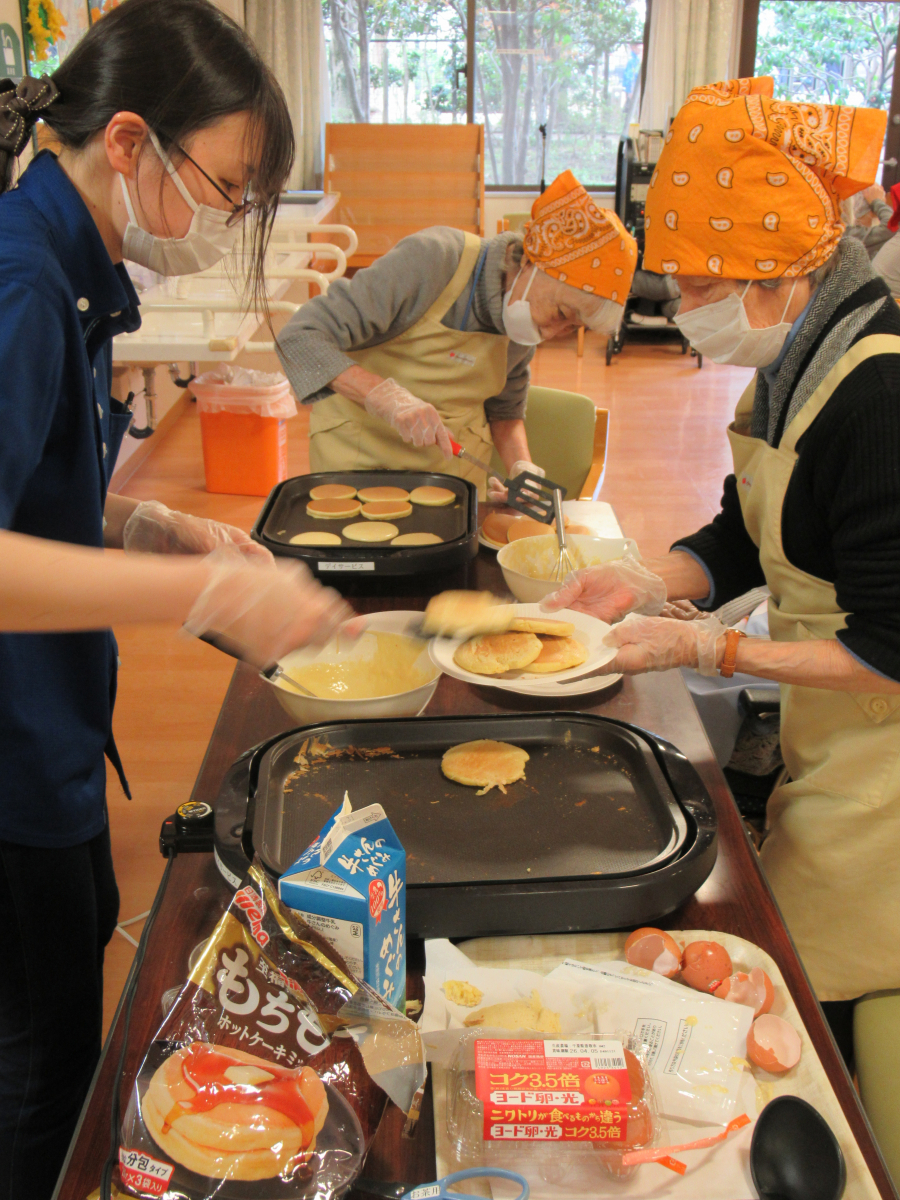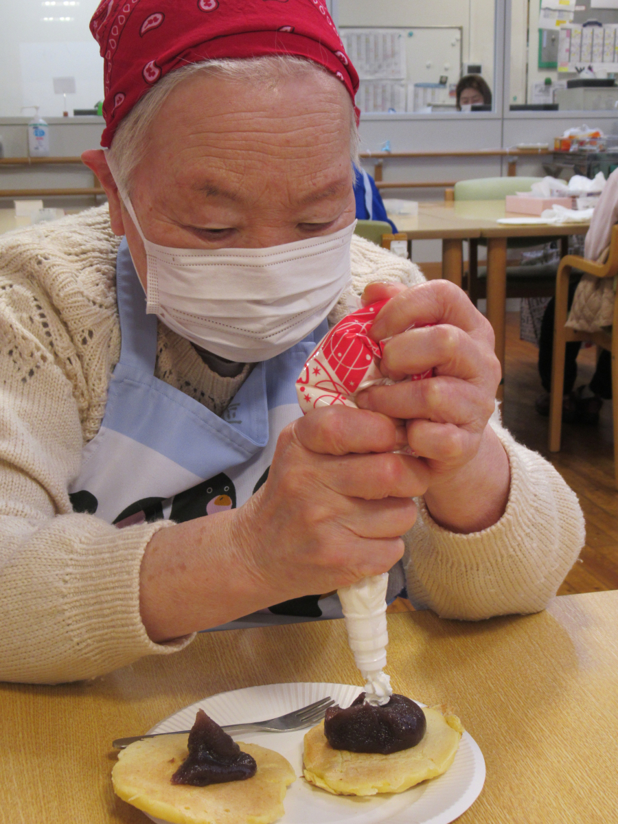今月の調理レクは「どらやき」を皆様で作りました!