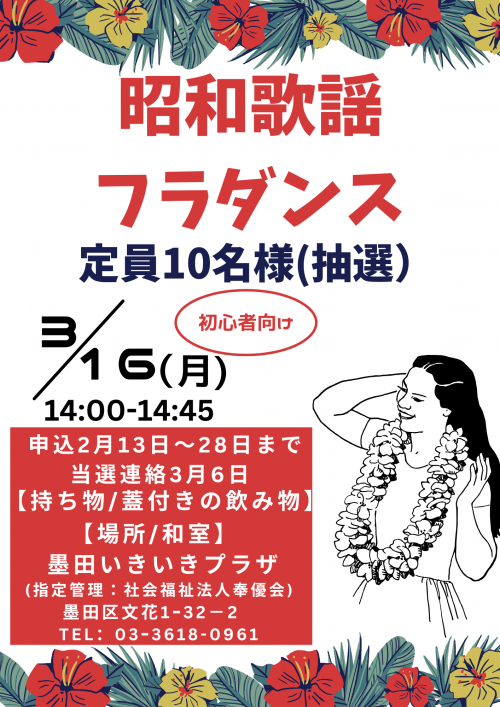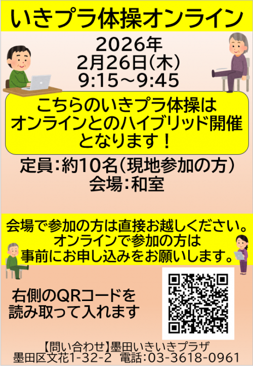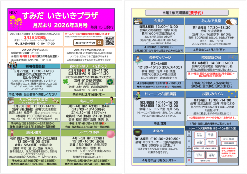 2026.02.17 【参加者募集♪】昭和歌謡フラダンス お知らせ 2026.02.17 2月のお花です✿② ニュース 2026.02.16 春の折り紙リースを作りませんか? お知らせ 2026.02.15 3月の予定表を発行しました。 お知らせ 2026.02.15 月だより3月号を発行しました。 お知らせ 2026.02.12 ♥チョコレートの世界へようこそ♡ 活動報告 2026.02.09 椅子に座って社交ダンス♪ 活動報告 2026.02.09 2月★いきプラ体操オンラインのお知らせ お知らせ 2026.02.09 魅惑°˖✧◝(⁰▿⁰)◜✧˖°の会食会 ー三色丼🍚ー 活動報告 2026.02.08 2月のお花です✿ ニュース 2026.02.08 入れ物になる雛人形☆彡 活動報告 2026.02.06 紙粘土で小物トレイを作りました♪ 活動報告 2026.02.06 豆まき会を行いました♪ 活動報告 2026.02.06 いきプラ体操 ㊗400回達成 •̀.̫•́✧ 活動報告 2026.02.04 能のリズムで♪チタプポ体操 活動報告 1 2 3 4 5 … 48