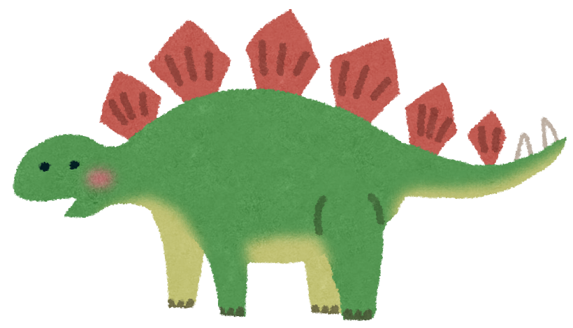 背中に大きな板のついた恐竜で、イラストだとこのような感じです↓