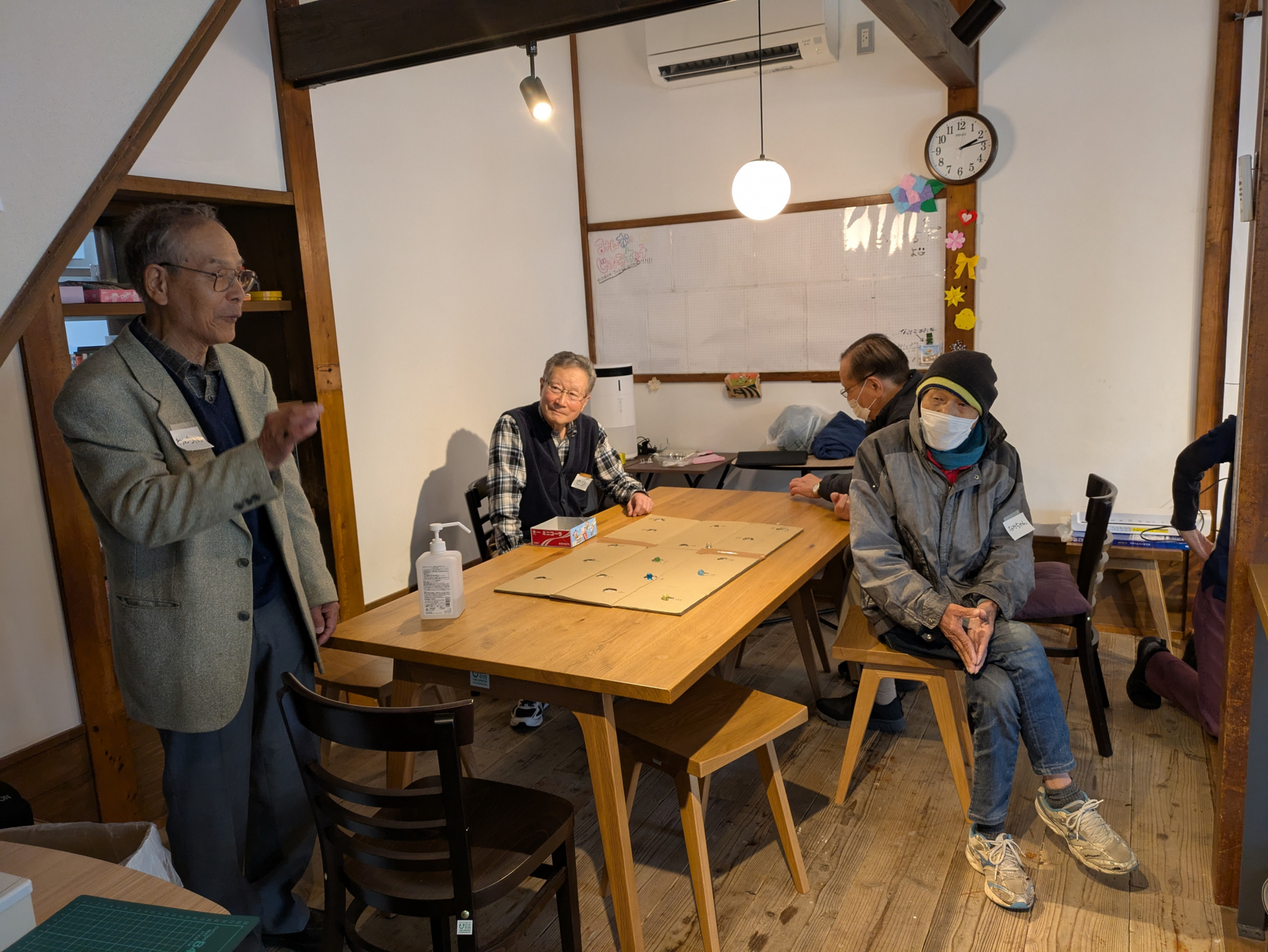 4/3(木)に開催した記念すべき第一回目のイベントは、「子供達に昔のおもちゃ遊びを教える会」でした。めんこ、ビー玉ピンボール、けん玉、おはじき、将棋、空き缶ぽっくり。。。などなど。