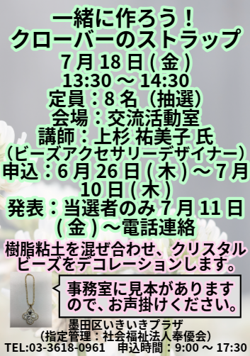 7月18日(金)『一緒に作ろう!クローバーのストラップ』を開催します!!