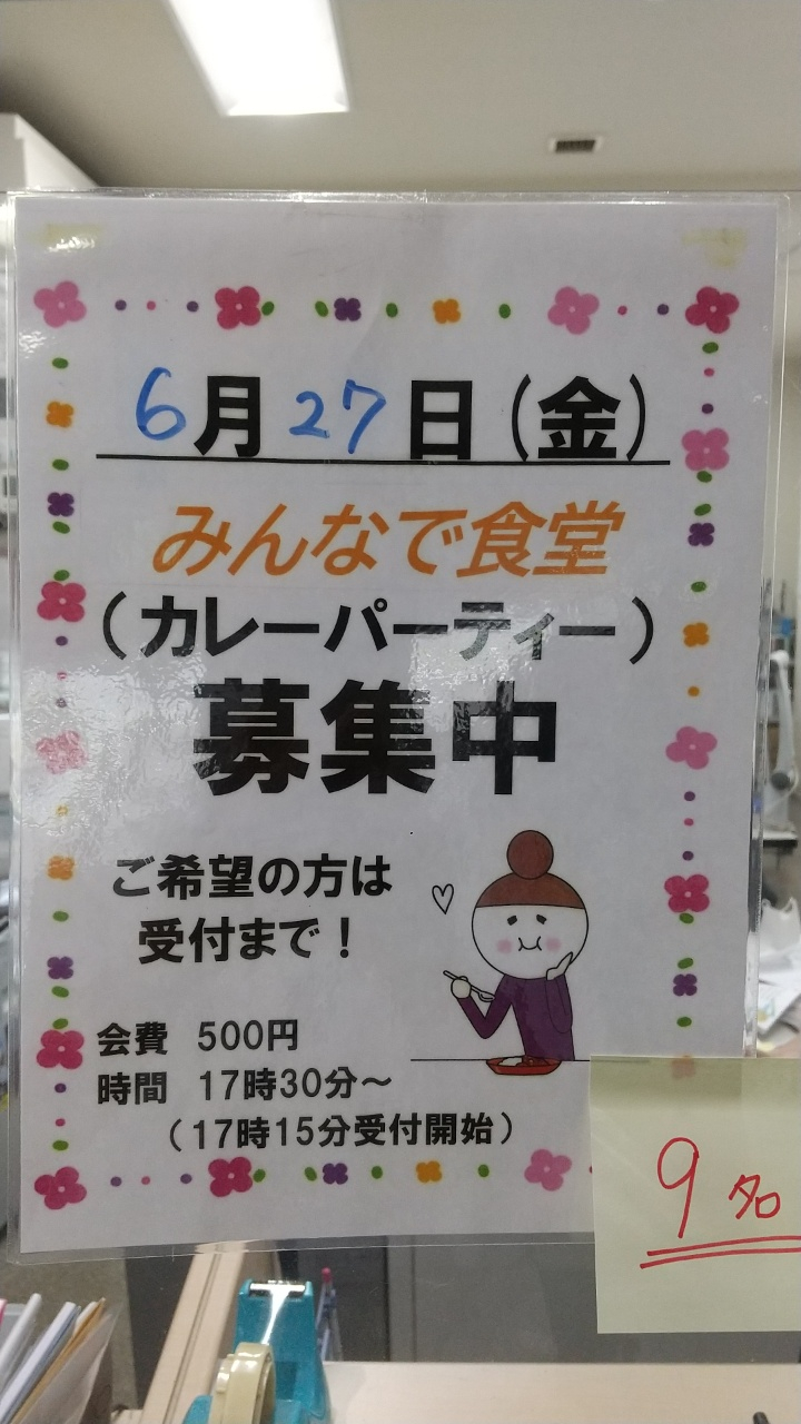 毎月第4金曜日 17:30ー18:30 ❝みんなで食堂❞でカレーライスの日を開催しています(*'ω'*)