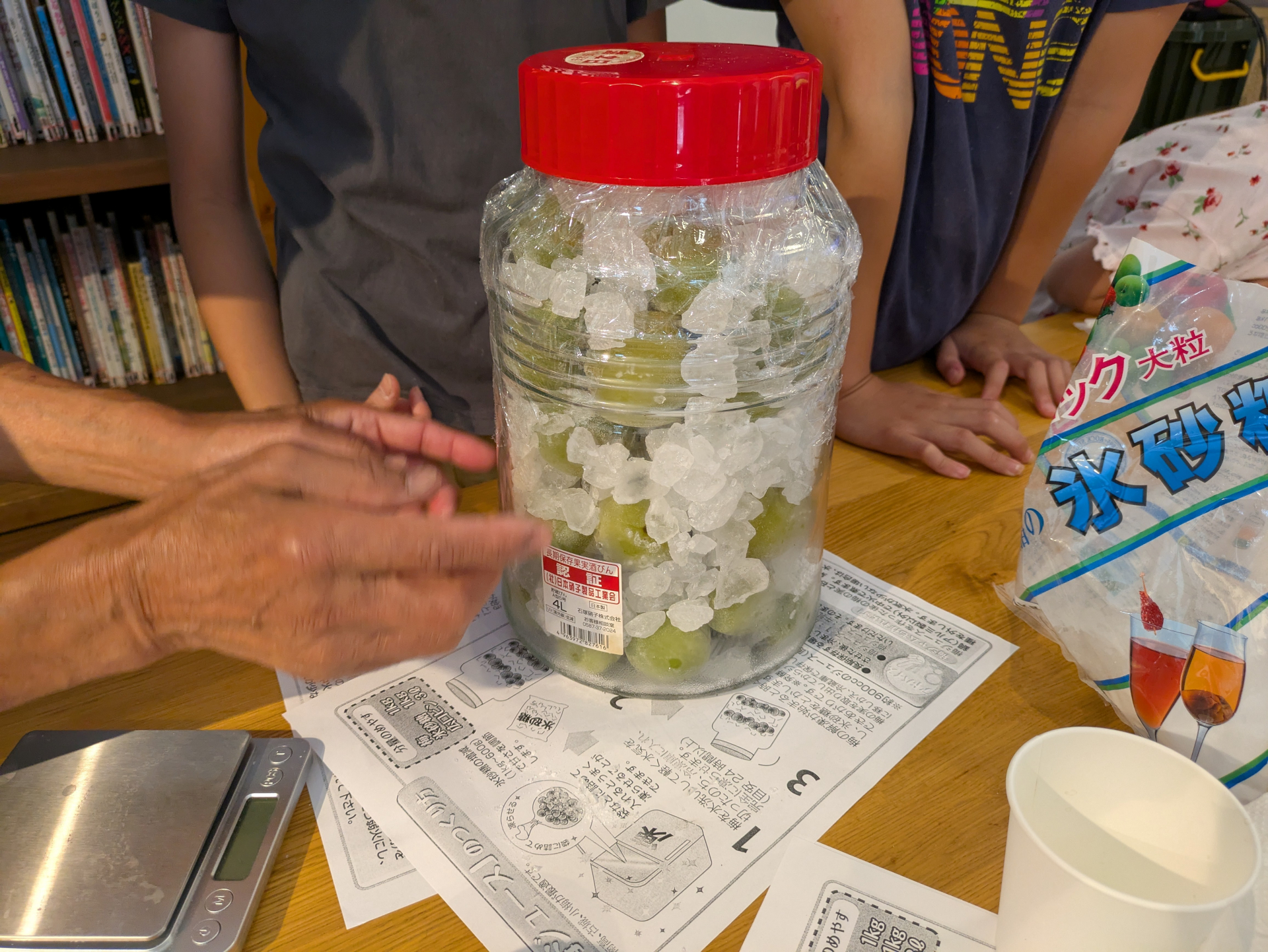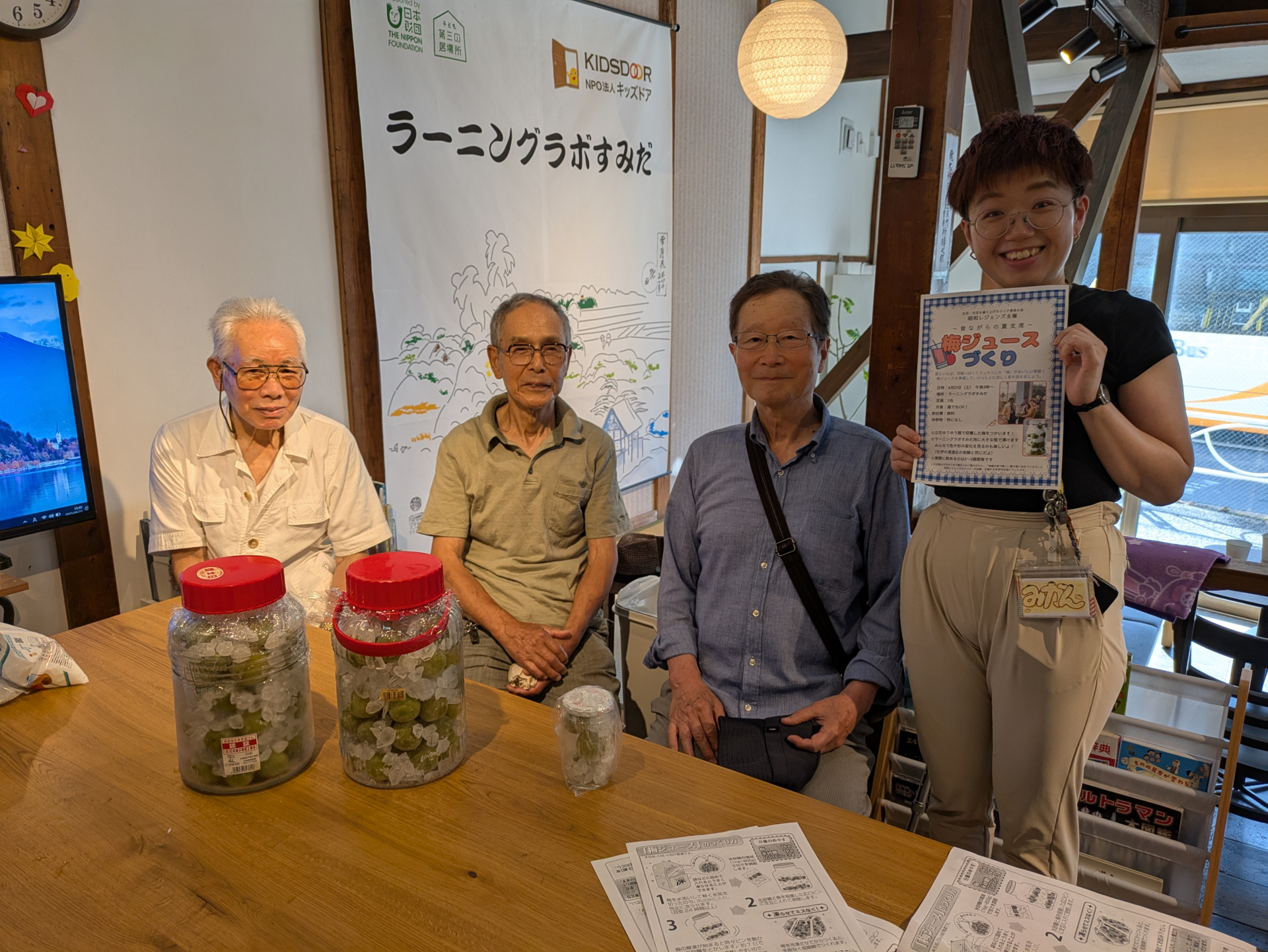 たちばなゆうゆう館で収穫した梅をラーニングラボすみだの子供達が下準備(洗ってへたを取る)をしておいてくれました。