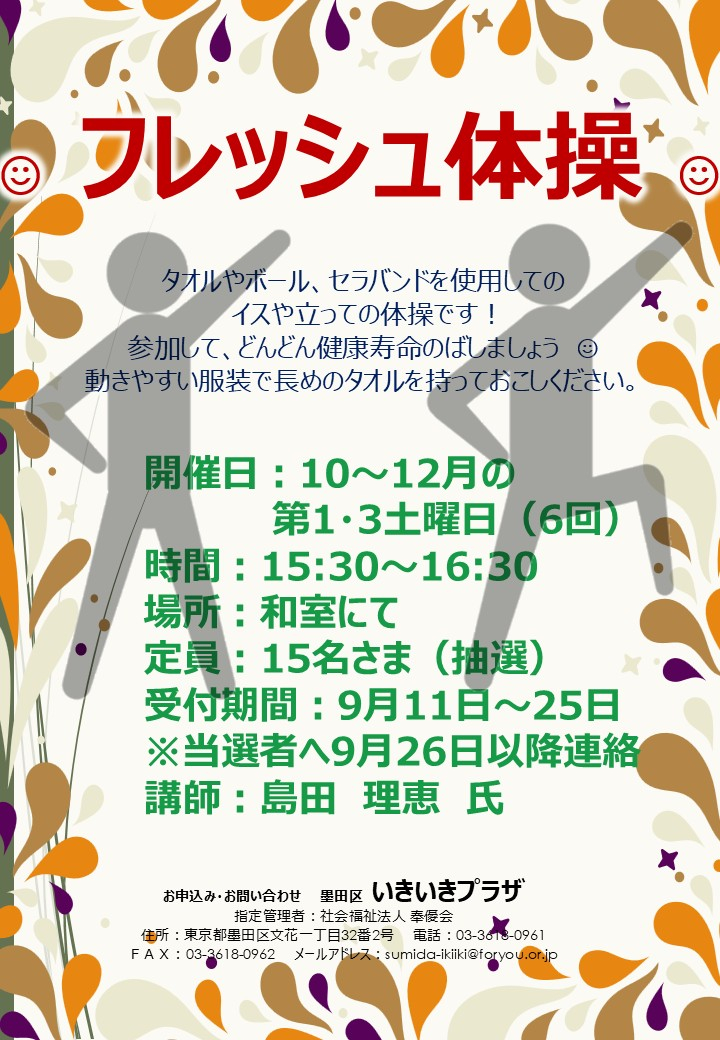 フレッシュ体操10-12月(全6回)募集開始です!!!!