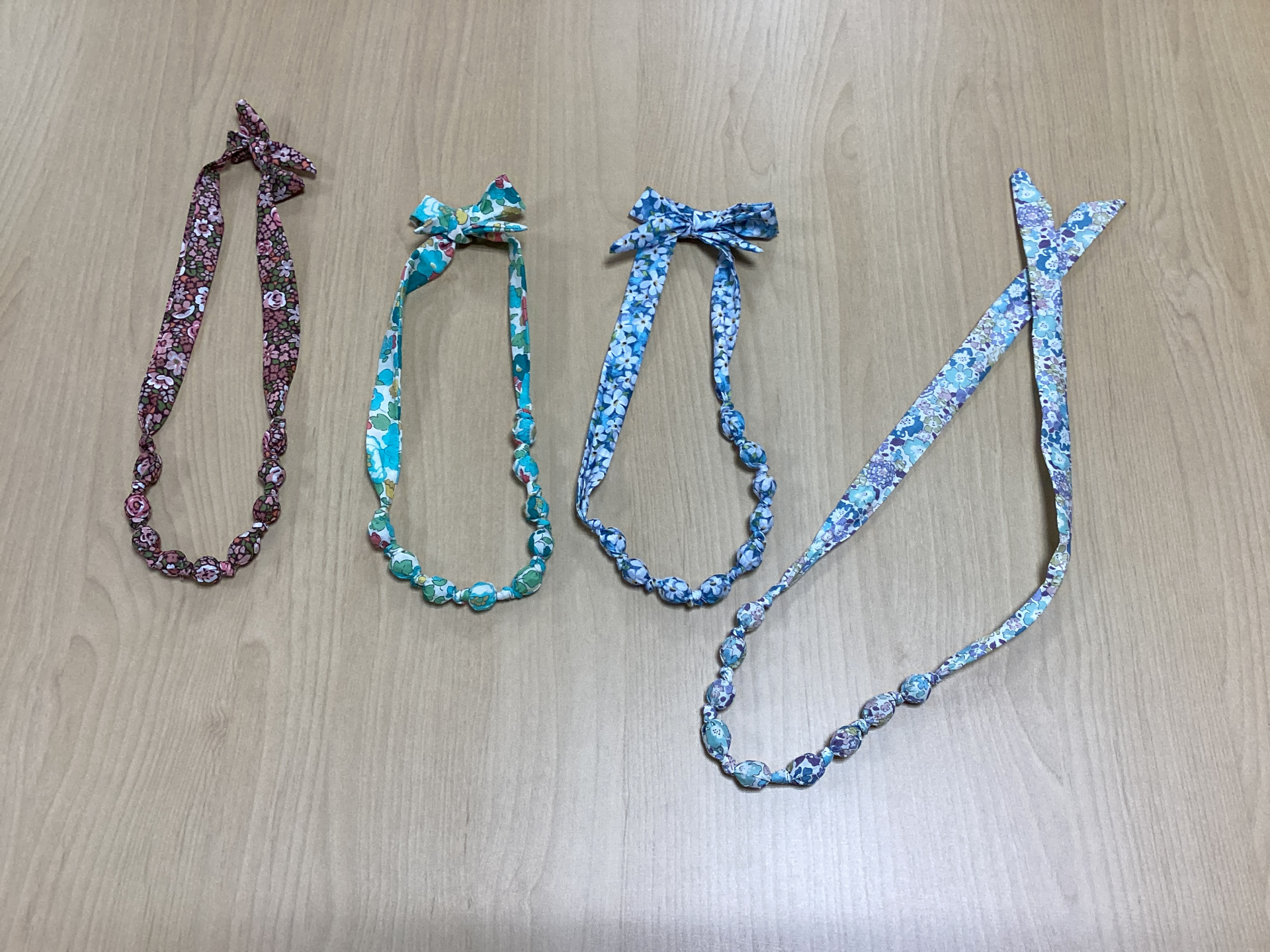 9月は『リバティプリントで作るラッピングネックレス』を作りました。
