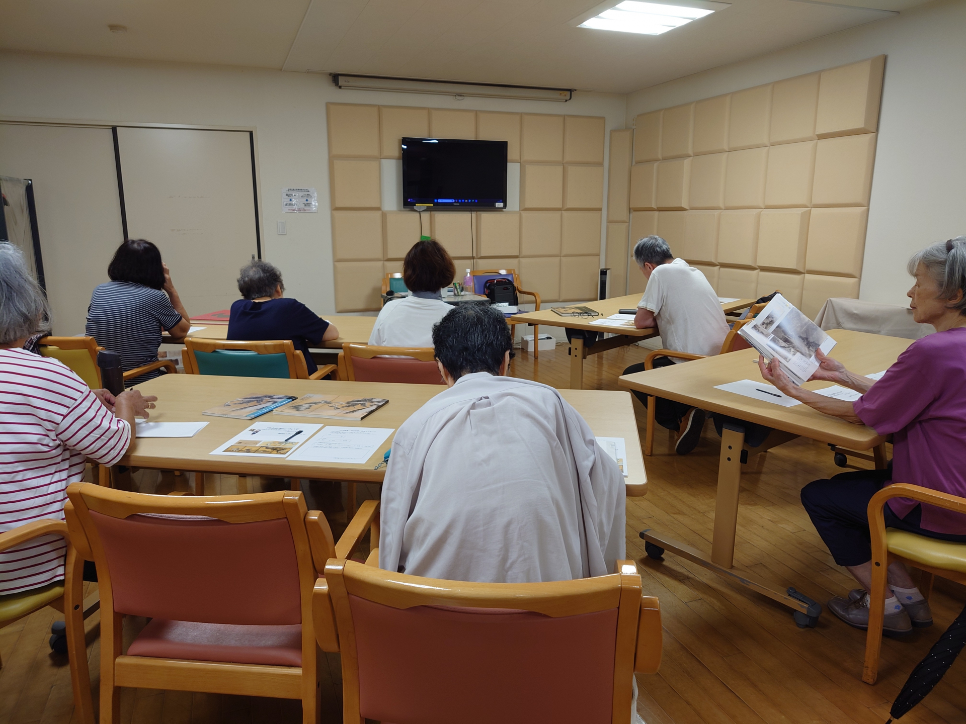 スクリーンに絵を映しての簡単な講座で