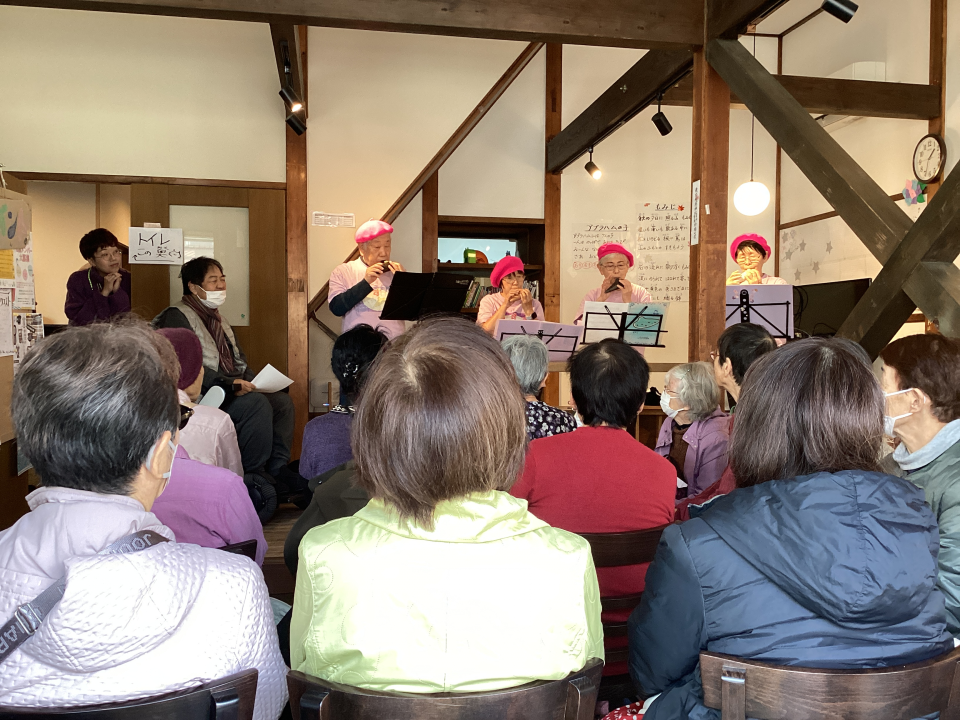 『昭和レジェンズ』メンバー、Y様のゆるやかな司会で進行し、オカリナ・二胡・ハーモニカ・トロンボーンの演奏の他、中学生によるオリジナル楽曲の披露もありました♬