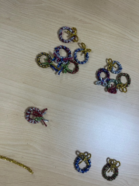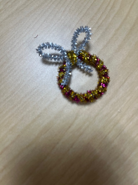 ⇧クリスマスにちなんでキラキラモールでリースを作りました♪