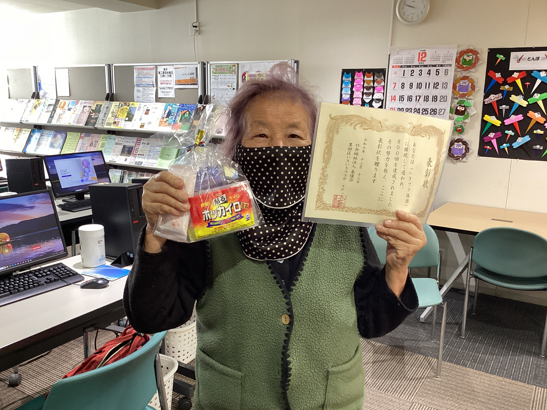 墨田いきいきプラザの朝の体操に参加されているMさんが、なんと参加800回を達成しました‼