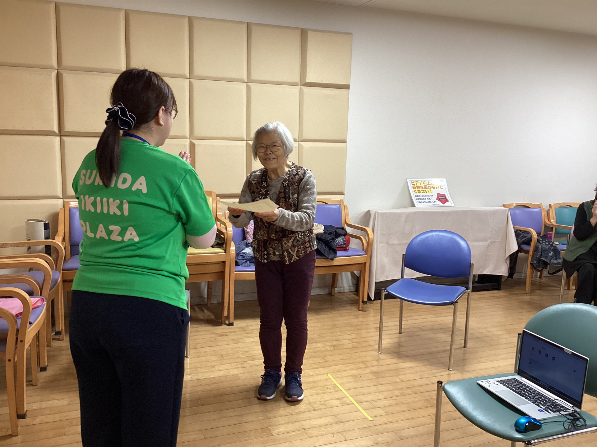 先日にいきプラ体操の参加が400回目を迎えた方がいらしたので、表彰しました。