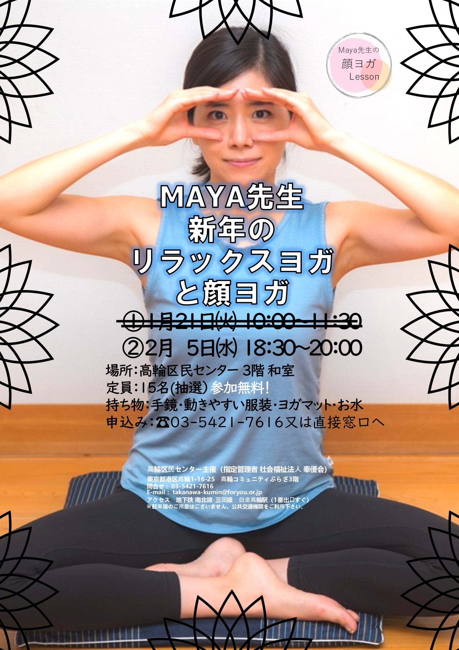 2/5㈬18:30~ MAYA先生新年のリラックスヨガと顔ヨガ