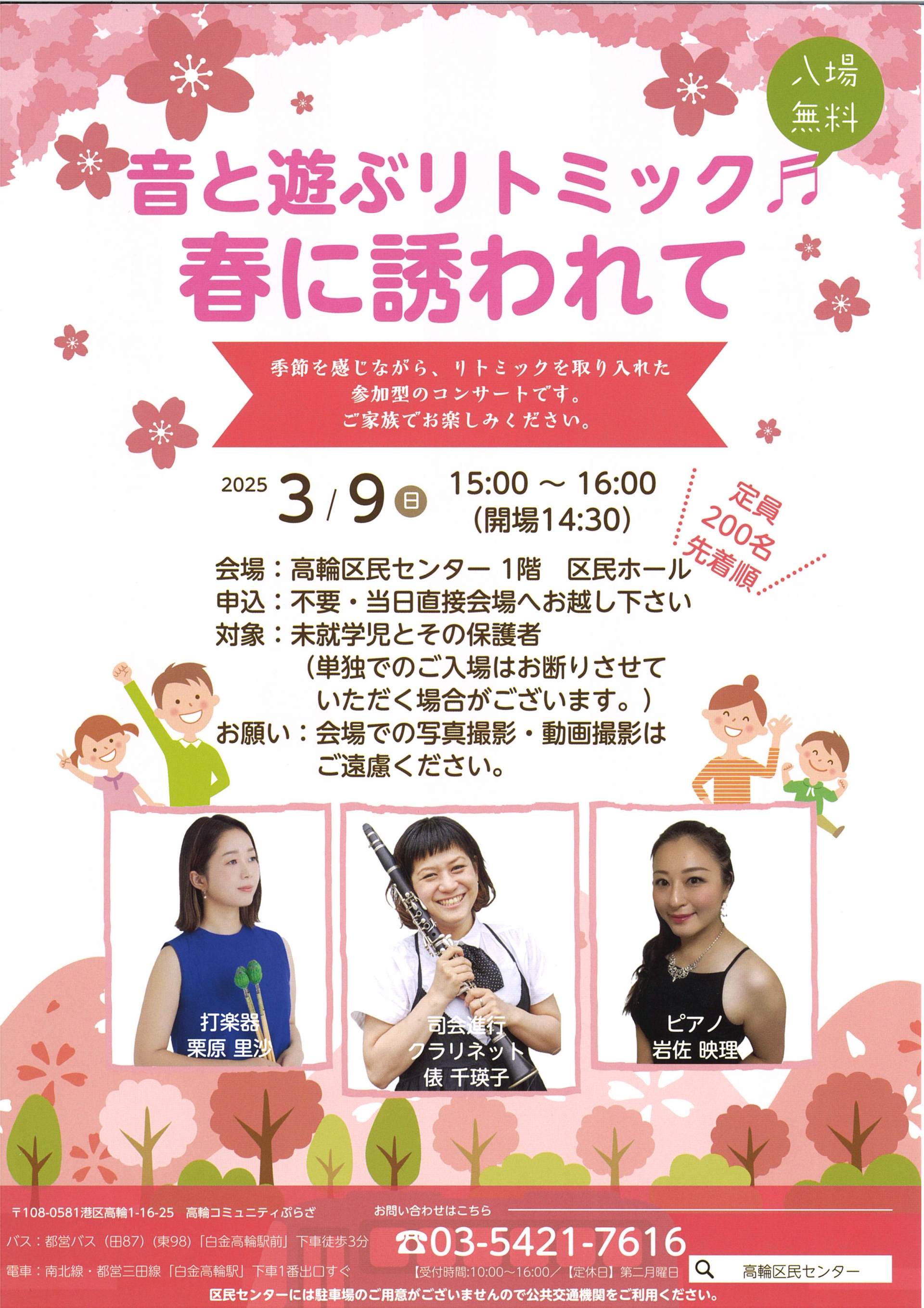 3月9日㈰ 15:00~ 音と遊ぶリトミック「春に誘われて」開催されます。