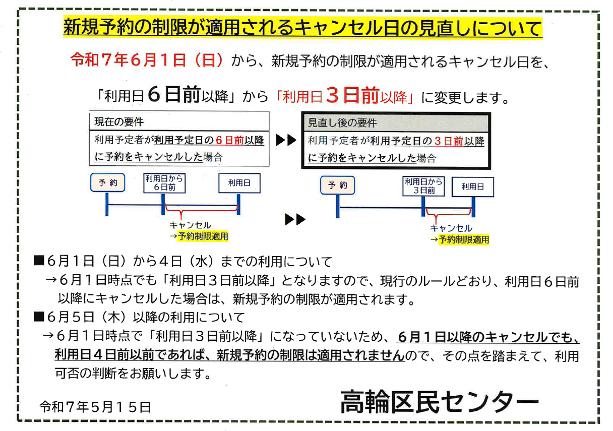 新規予約の制限が適用されるキャンセル日の見直しについて