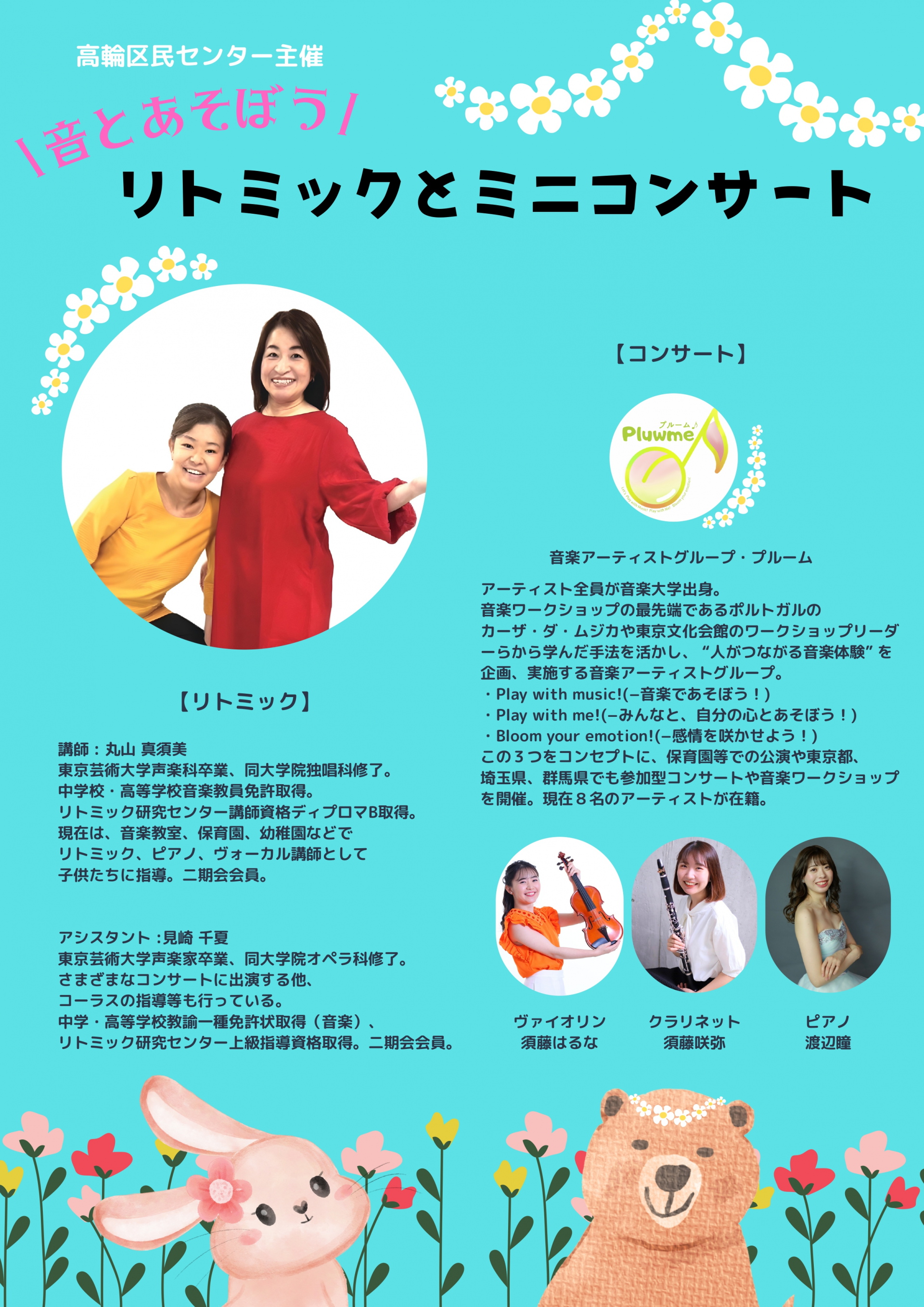 プロのリトミック講師によるリトミック体験&歌と楽器の楽しいコンサート♪