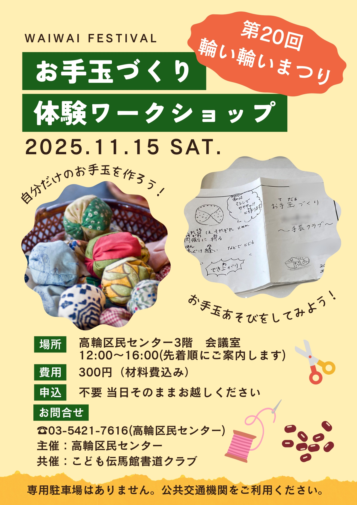 輪い輪いまつりイベント④ 11月15日㈯【お手玉づくり 体験ワークショップ】開催いたします!