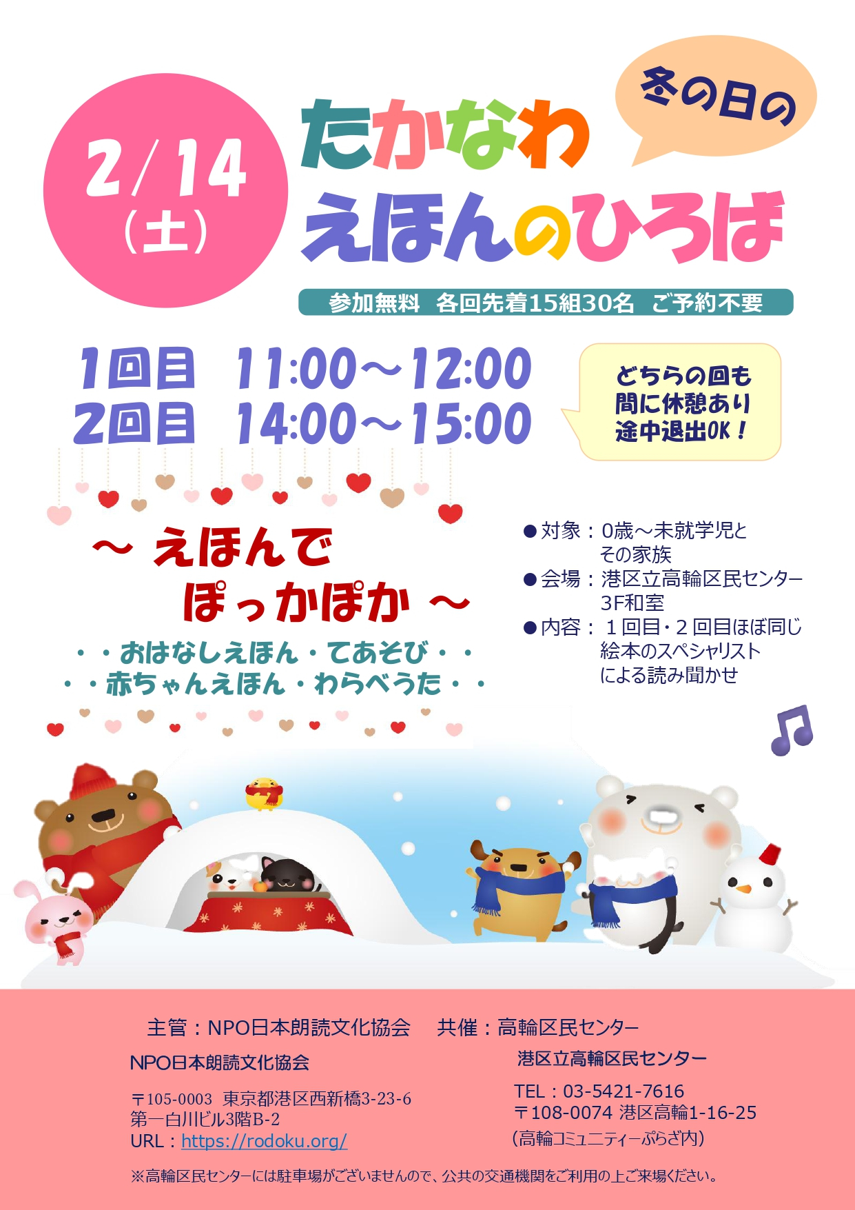 2月14日(土) たかなわえほんのひろば(読み聞かせ)を開催いたします。