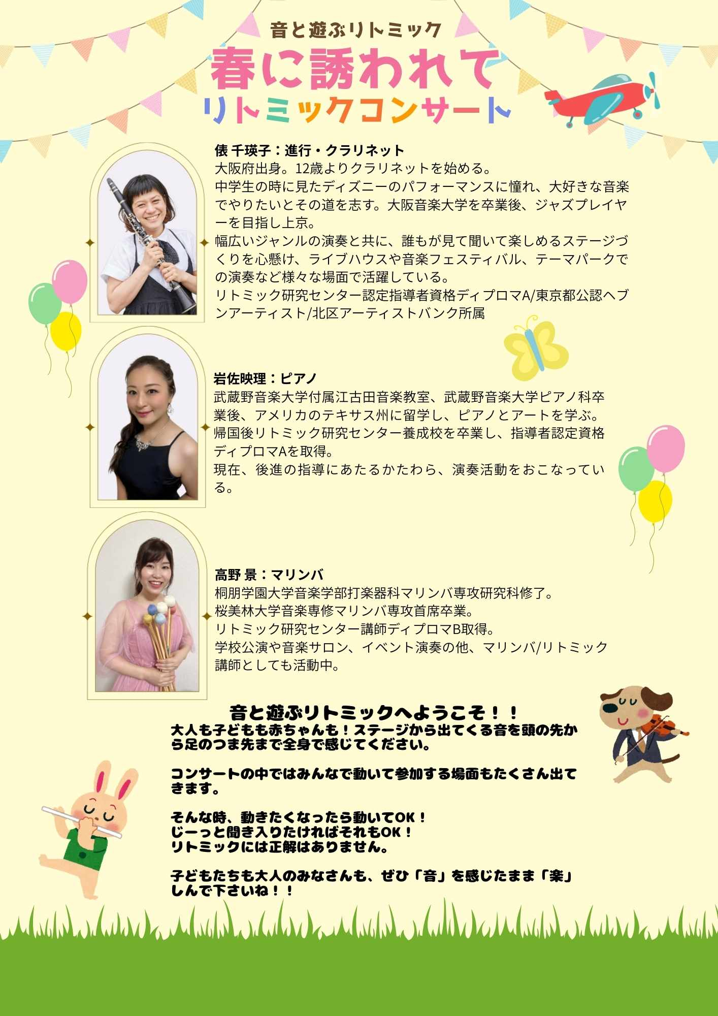 3月8日㈰ 15時~ 春に誘われて~リトミックコンサート