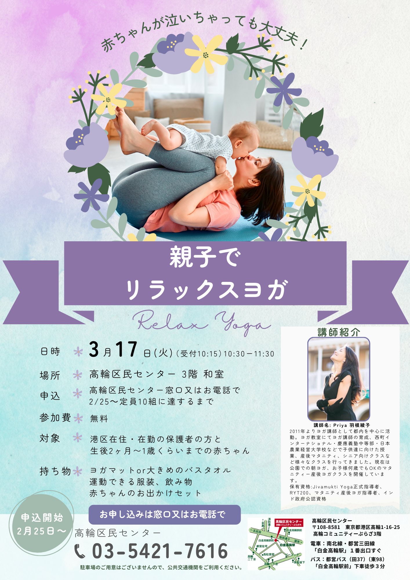 3月17日(火)10:30~ 親子でリラックスヨガ