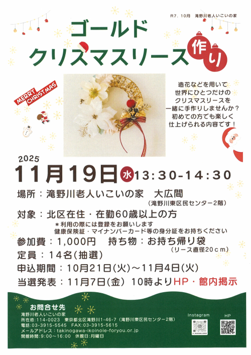 2025.10.15 【北区ニュース10月20日号掲載】 「ゴールドクリスマスリース作りの講座」開催のお知らせ お知らせ 2025.10.15 【北区ニュース10月20日号掲載】「ボッチャ正式ルール体験会」開催のお知らせ お知らせ 2025.10.15 気軽にボランティア 秋の装飾 活動報告 2025.10.15 【当選発表】廃材で作るアクセサリー(10月22日(水)開催) お知らせ 2025.10.14 手話サロン 都道府県を覚えました 活動報告 2025.10.14 【当選発表】やさしい社交ダンス体験会(11月5日(水)開催) お知らせ 2025.10.14 【当選発表】ペルビックトレーニング体験講座(10月21日(火)開催) お知らせ 2025.10.12 理恵先生の健康体操 活動報告 2025.10.12 詩吟と漢詩 (秋期第1回目) 活動報告 2025.10.12 【当選発表】指先を美しく❤ネイルアート講座 お知らせ 2025.10.11 【外出行事】「北区防災センター(地震の科学館)」に行って来ました。 活動報告 2025.10.08 【活動報告】畳の香りに包まれて、畳の魅力について学ぶ 活動報告 2025.10.08 脳いきいきタブレット講座(第4回目) 活動報告 2025.10.07 ネイルボランティア 出張準備中です! 活動報告 2025.10.05 北区区民まつり ボランティアさんと一緒に参加してきました!~初日~ 活動報告 1 2 3 4 5 … 48